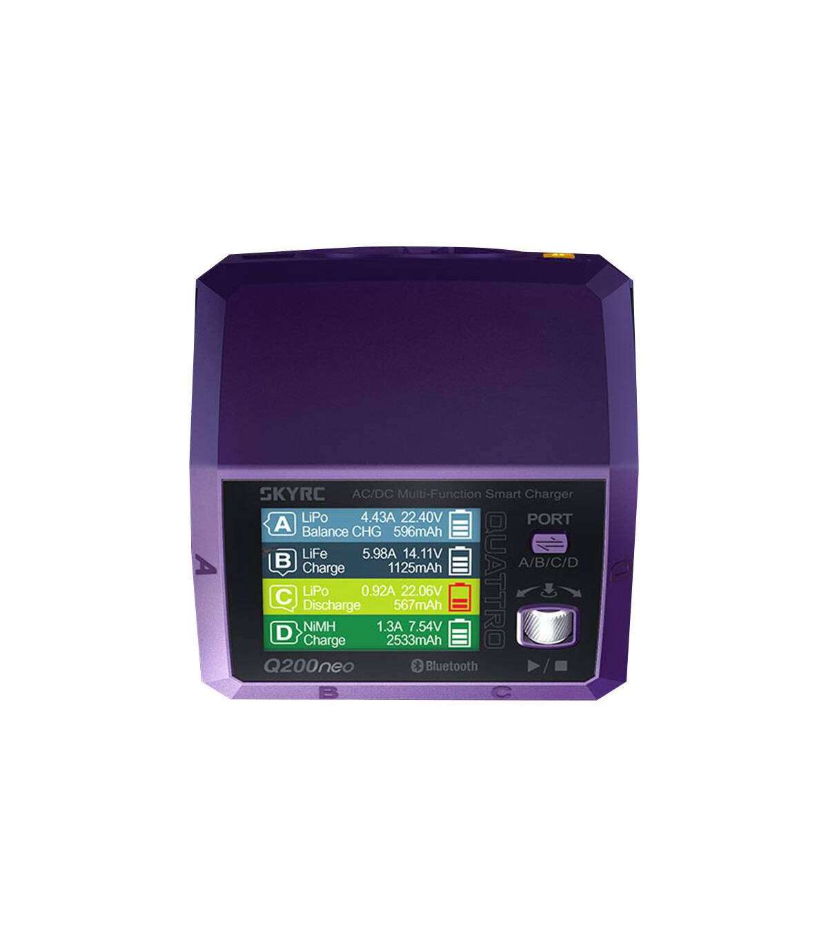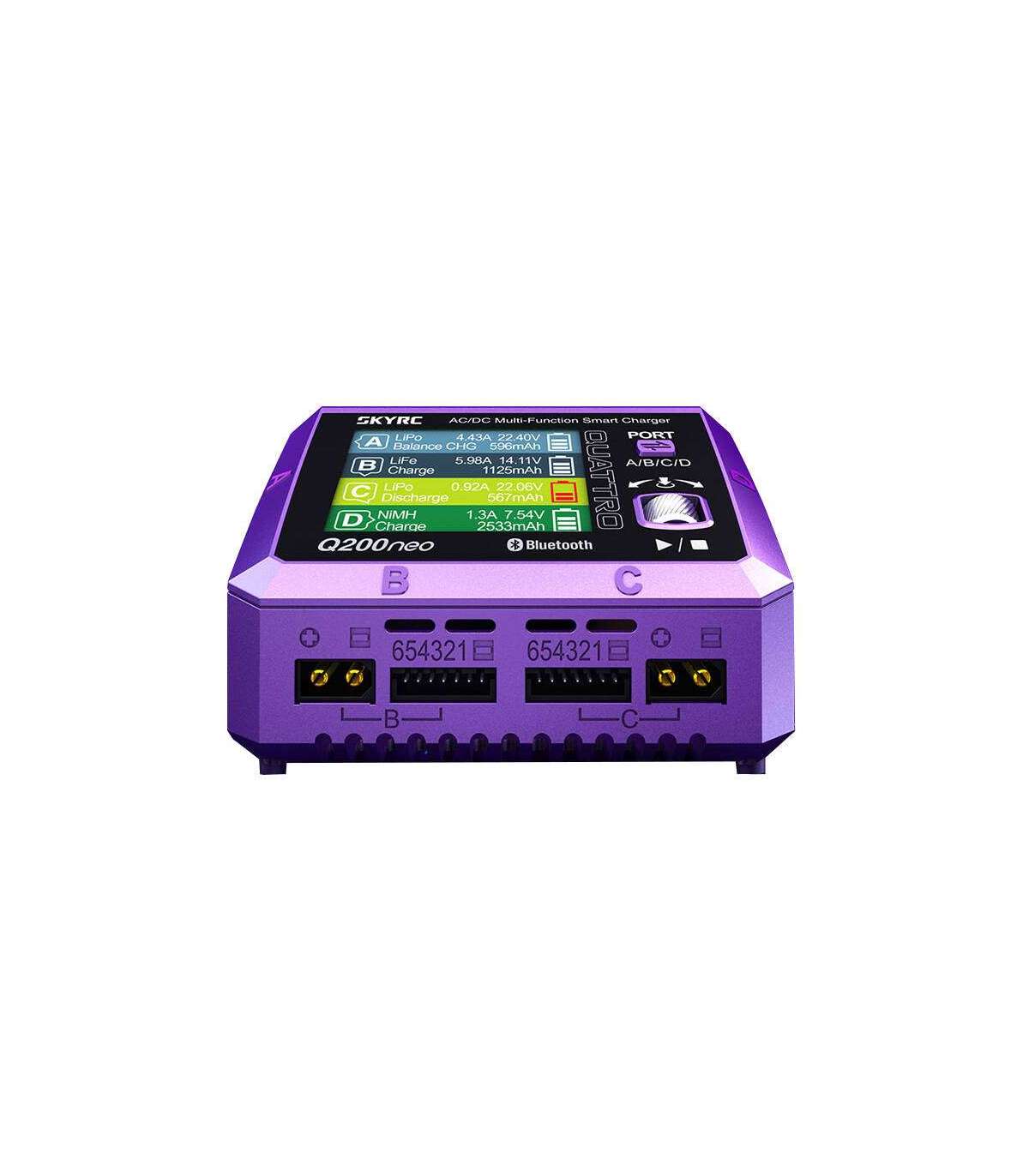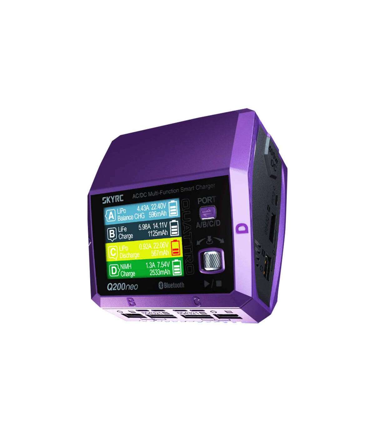 The innovative SkyRC Q200neo charger is the perfect choice for every RC enthusiast. It allows you to charge 4 different batteries simultaneously and can be powered by both direct current (DC) and alternating current (AC). It stands out with a power of up to 400 W and a built-in high-precision balancer that optimizes voltage equalization within ±0.02 V. Despite its powerful capabilities, the product is surprisingly compact and portable.
