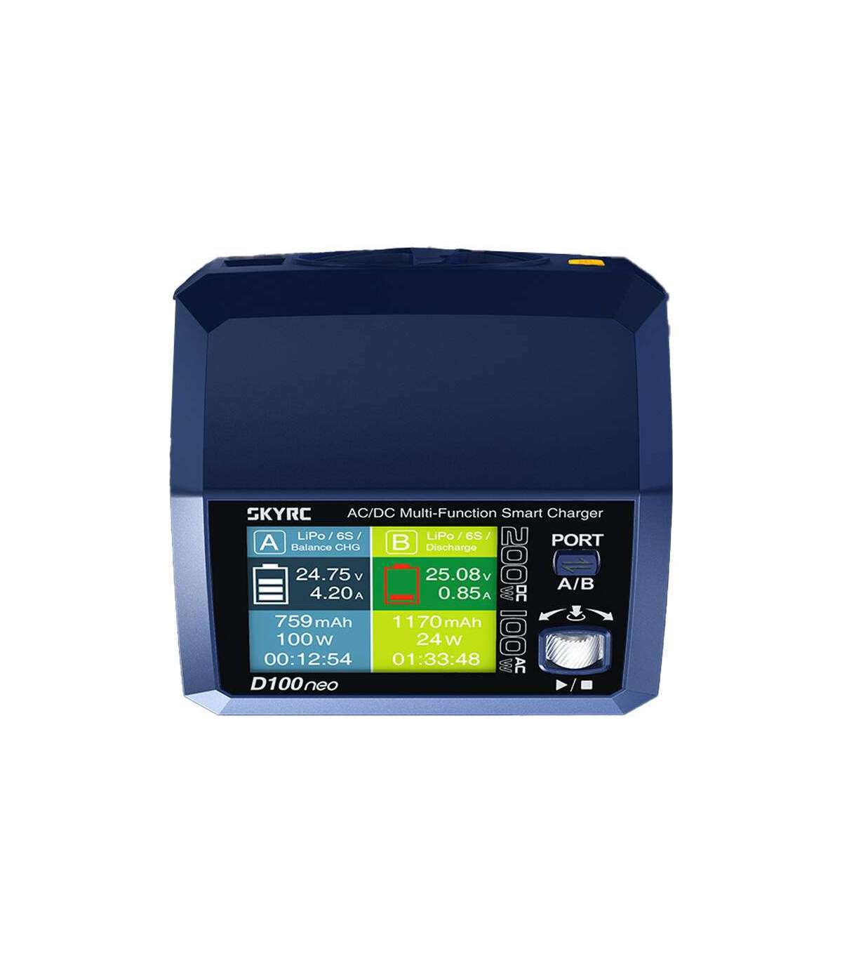The SkyRC D100neo Charger combines efficient charging with up to 25W of power and advanced discharging with voltage balancing capability, ensuring optimal battery condition and longevity. The device automatically allocates power between the ports, maximizing the charging efficiency of individual batteries and providing fast charging when using both ports simultaneously. It also provides balancing accuracy up to ±0.02V, guaranteeing voltage optimization for each cell, crucial for extending their lifespan and maintaining full capacity.