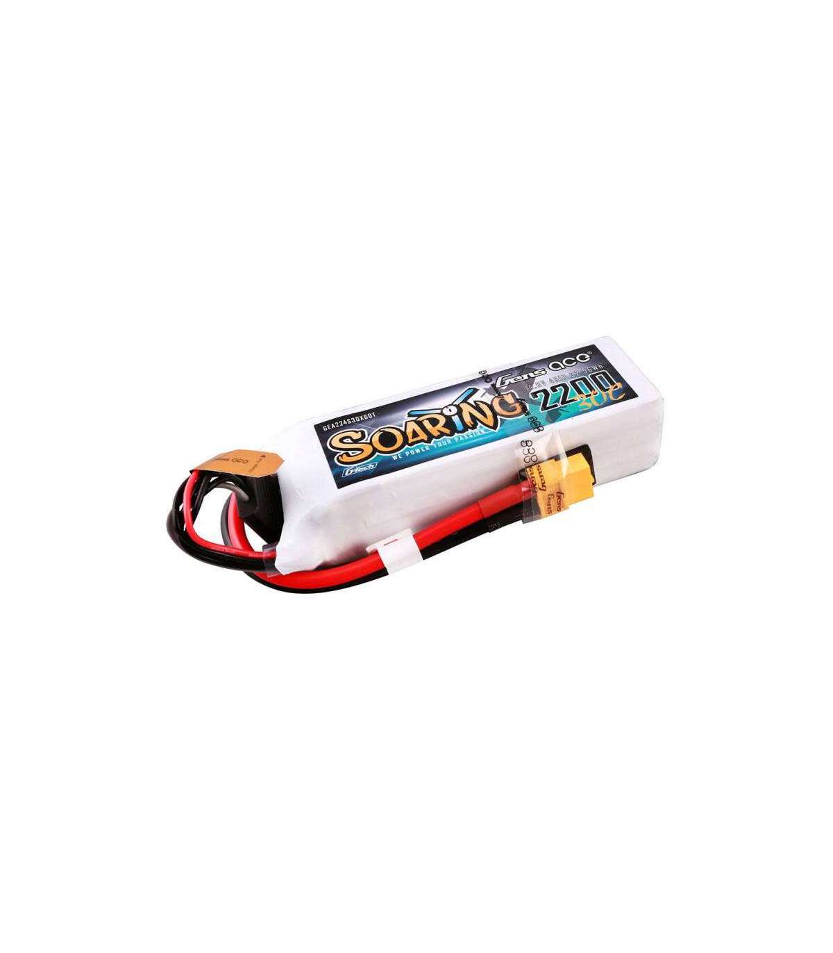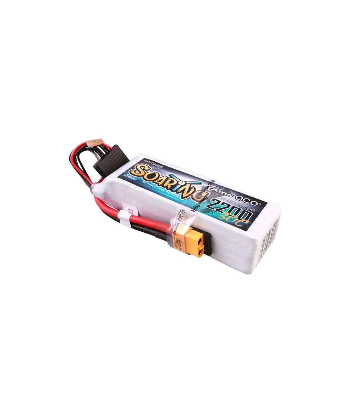 Gens ace G-Tech Soaring 2200mAh 14.8V 30C 4S1P Lipo battery with XT60 connector.