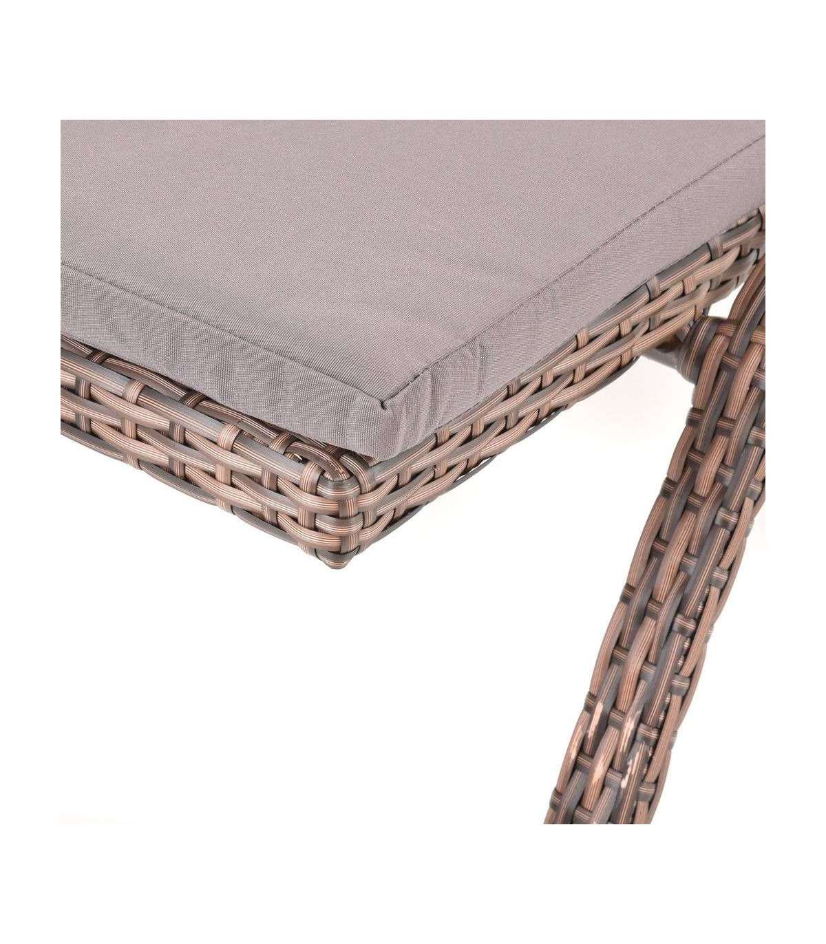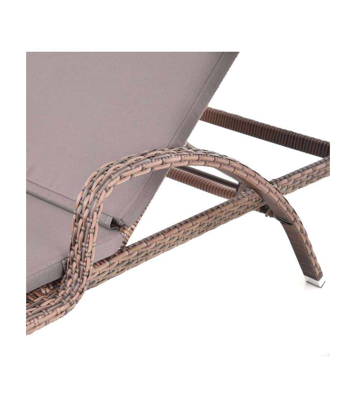 Komaxiti viimistluse ja rotangist imitatsiooniga alumiiniumist lamamistool. Reguleeritav seljatugi. Vastupidav ebasoodsatele ilmastikutingimustele ja UV-kiirgusele, lihtne hooldada. Sobib välis- ja siseruumides. Sobib niiskesse keskkonda. Maksimaalne koormus 180 kg. Kaal 14 kg. Kaasas kiiresti kuivava polüesterkattega madrats.