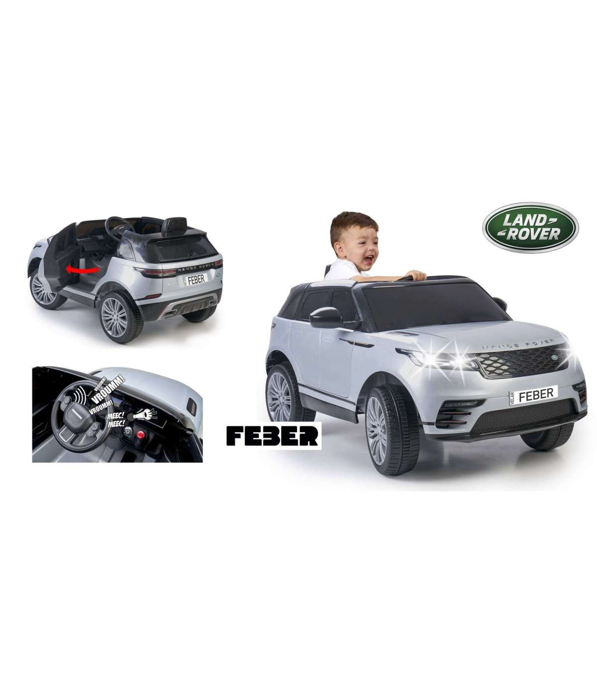RANGE ROVER VELAR 6v tuntud Hispaania firmalt FEBER on ühekoha sõiduk 6V mootoriga, varustatud: esituled, mootorihelid ja signaal, gaasipedaal, elektriline pidur, akordionuksed ja kummradadega rattad. Mõeldud lastele vanuses 3 kuni 7 aastat ning maksimaalseks lubatud kaaluks kuni 35 kg. Komplektis 6 V aku ja laadija. Selle erakordse sõiduki maksimaalne saavutatav kiirus on 3,5 km/h. Sõiduki ideaalne siluett rõõmustab iga autoentusiasti! Aku töötab kuni 60 minutit järjest! Ideaalne kingitus teie lapsele!