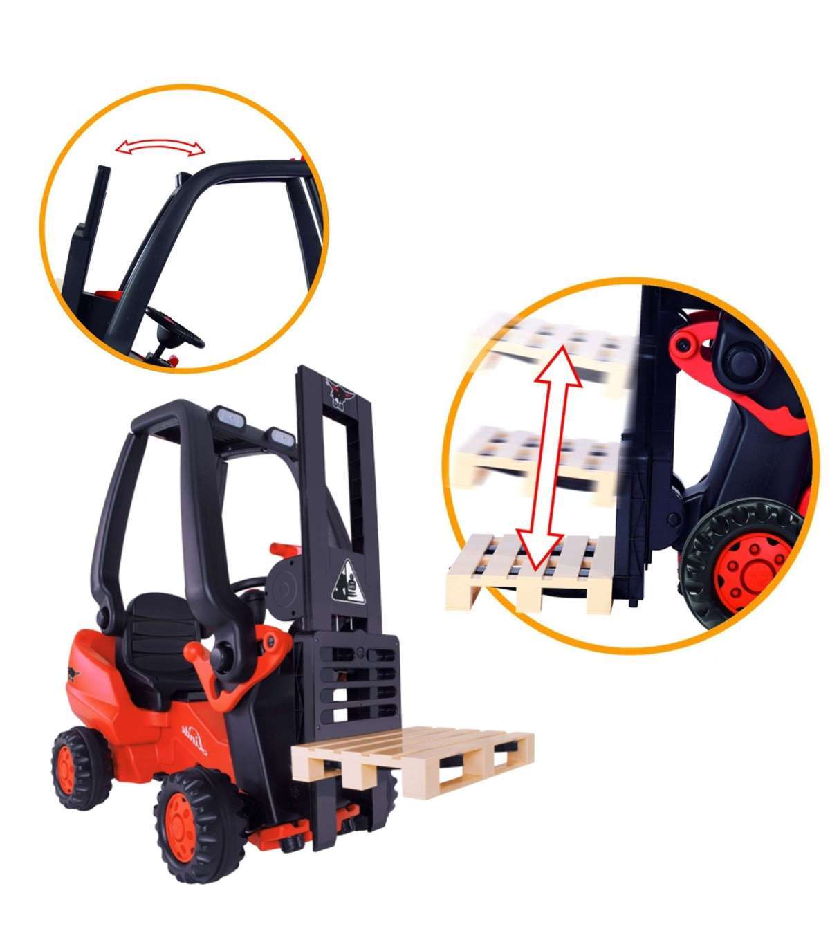 • - The forklift has a comfortable seat that is adjustable in 3 positions , which allows for proper adjustment to the child's height.