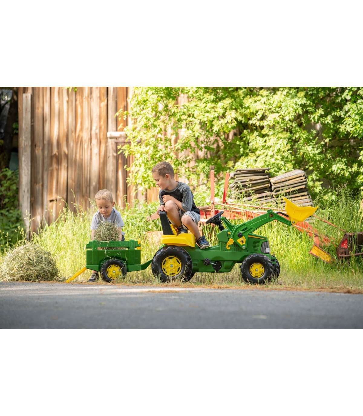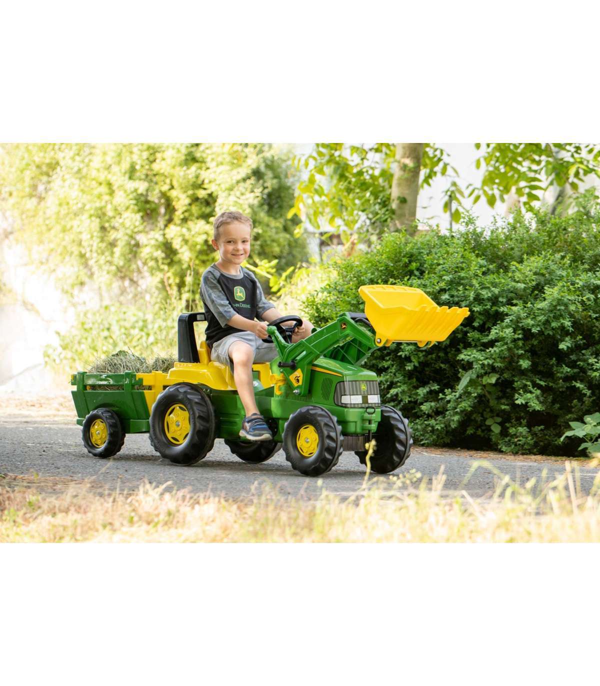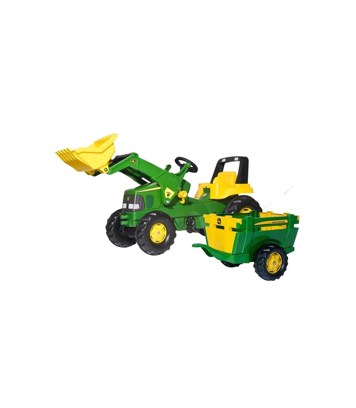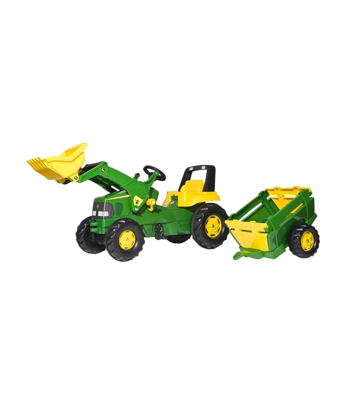RollyJunior pedaaltraktor, valmistatud John Deere litsentsi alusel, koos Rolly Toys'i labida ja haagisega, on üks parimaid lastele mõeldud traktoreid turul. Mänguasi on paljude väikeste traktorijuhtide unistuse täitumine. Hoolikalt valmistatud, pöörates tähelepanu kõigele detailile. Ükski tõeline talunik ei ütleks sellele ära. Ideaalne kingitus igaks juhuks. See roheline pedaaltraktor on ideaalne mänguasi lastele alates 3. eluaastast. Mänguasi teenib teie lapsi mitu aastat, pakkudes neile mitte ainult suurepärast lõbu, vaid arendades ka nende motoorseid oskusi ja liigutuste koordinatsiooni. Traktori konstruktsioon tagab mängu ajal täieliku ohutuse tänu suletud mehaanilisele süsteemile, mis kaitseb last juhuslike vigastuste eest. Lisaks on traktori kapott tõstetav, mis võimaldab lapsel mängida oma sõiduki parandamist. Lisafunktsioonid, nagu liikuv labidas ja lahtivõetav haagis, mitmekesistavad mängu, võimaldades lapsel vedada erinevaid esemeid ja simuleerida talutöid. Avanev eesmine kapott lisab reaalsust ja võimaldab lapsel veelgi interaktiivsemat mängu. Veljed ja tugev ketiülekande mehhanism tagavad mänguasja vastupidavuse ja usaldusväärsuse.
