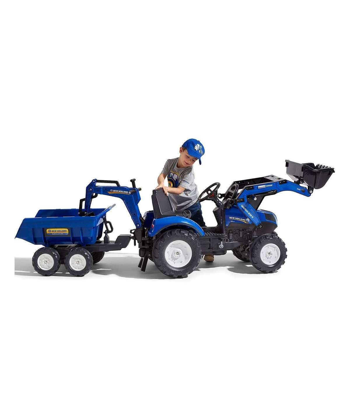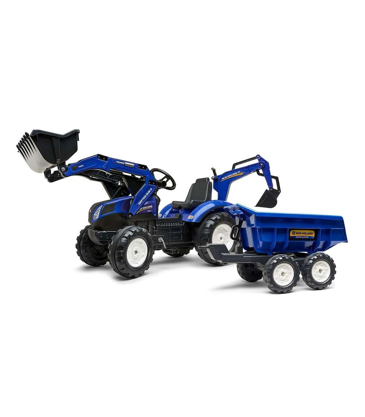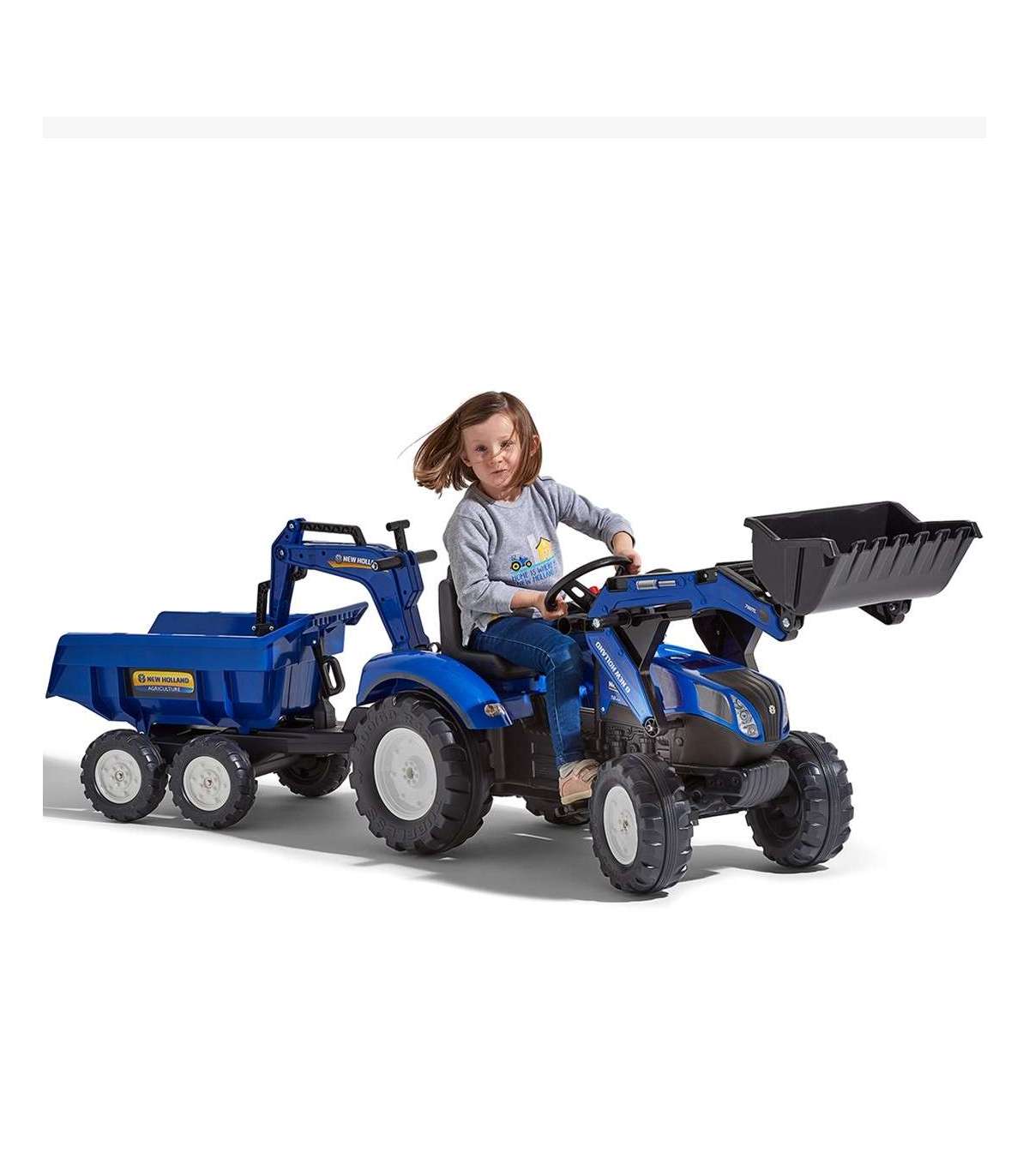FALK New Holland pedaaltraktor, sinine, koos haagisega, alates 3. eluaastast