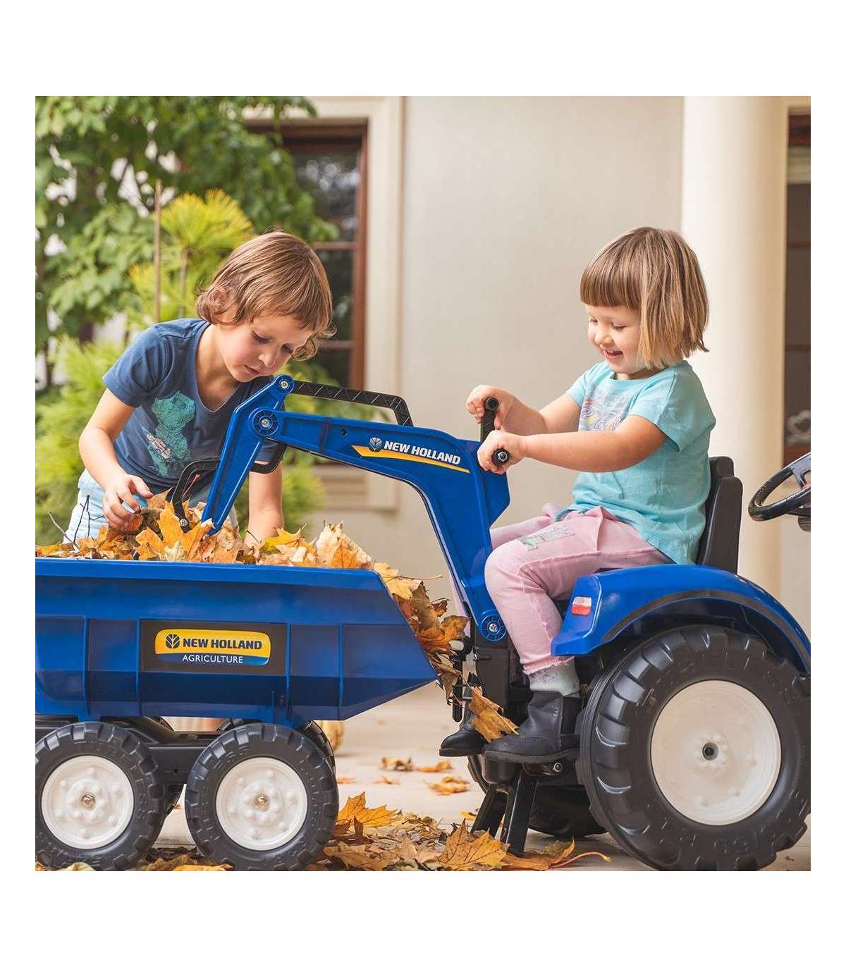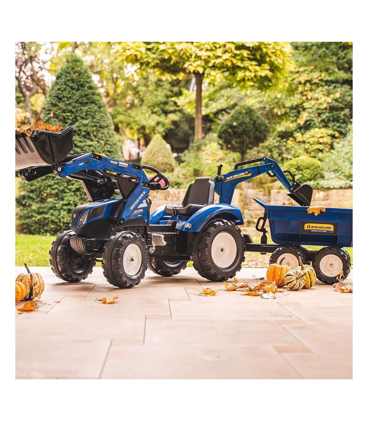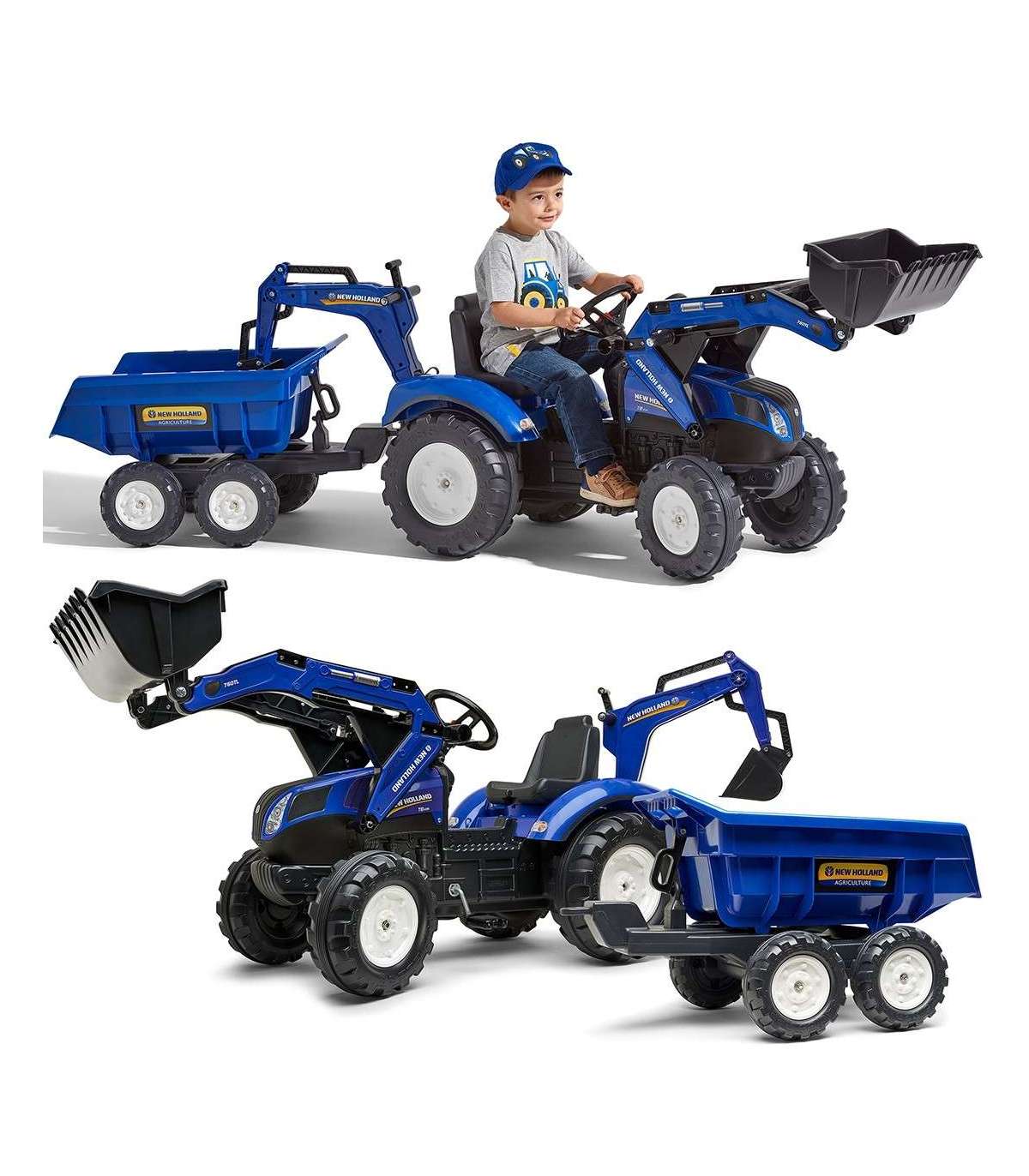 FALK New Holland pedaaltraktor, sinine, koos haagisega, alates 3. eluaastast