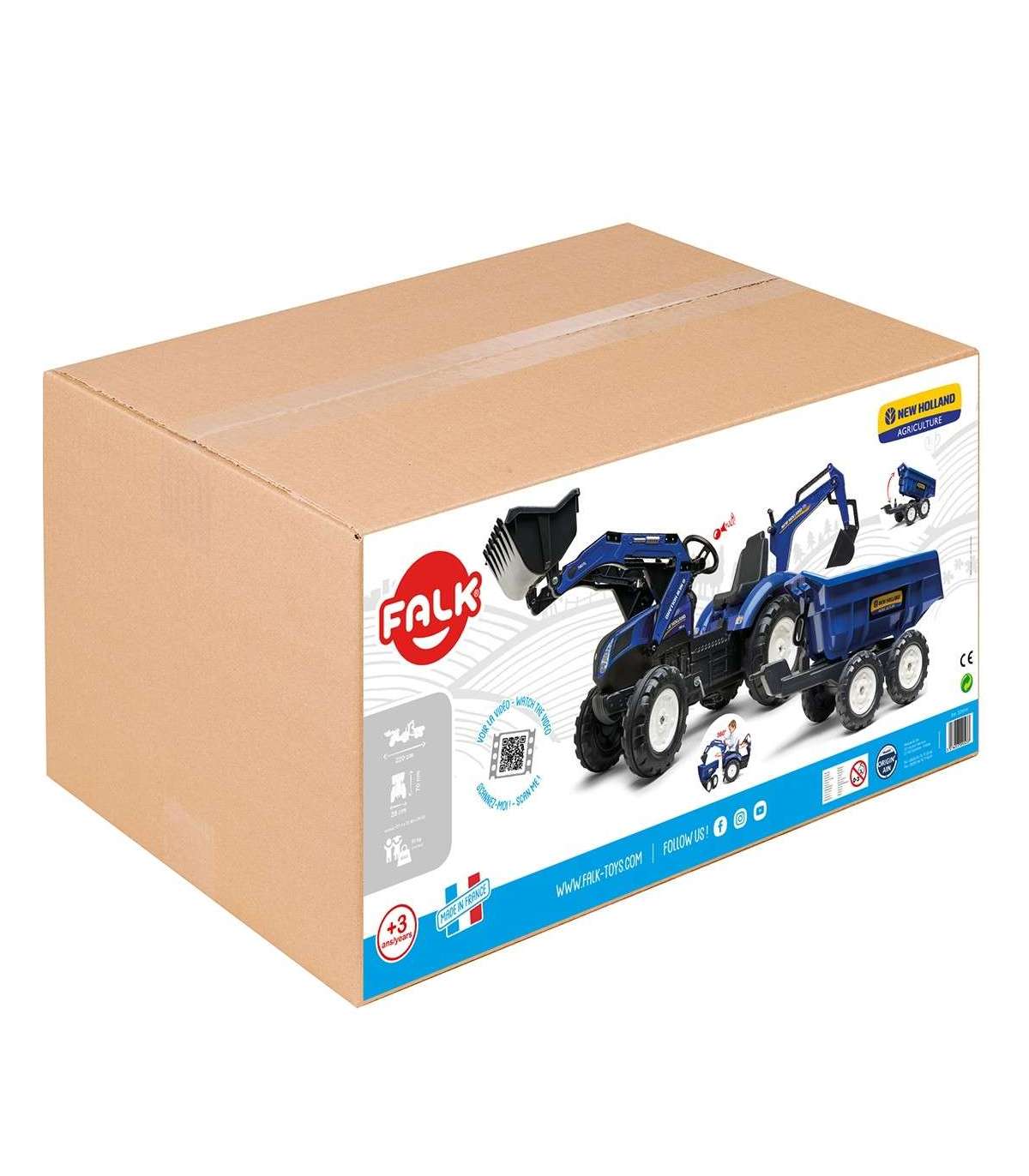 New Hollandi traktor haagisega tootjalt FALK on paljude väikeste traktorisõprade unistuse täitumine. Hoolikalt valmistatud, pöörates tähelepanu iga väikseimale detailile! Mitte ükski talunik ei põlgaks sellist. Pedaalidega sõiduk - ideaalne kingitus iga lapse jaoks. Uusim New Holland pedaaltraktor lastele esikopaga, laaduriga ja haagisega on valmistatud kõrgekvaliteedilisest plastikust. Sellel on ka pöörlev iste. Sõiduk on mõeldud lastele alates 3. eluaastast. Iga noor traktorist armastab seda mudelit; sõiduk on valminud New Hollandi originaalvärvides.