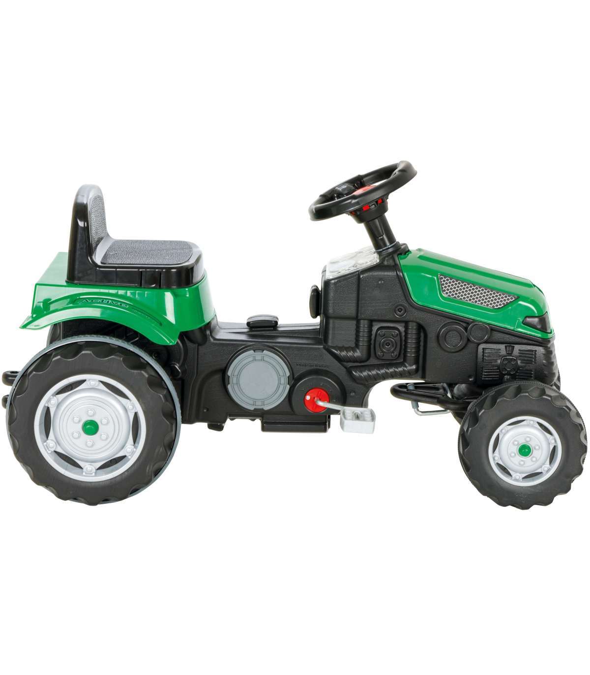 Pedaltraktor rohelises värvitoonis on ideaalne mänguasi, et alustada seiklusi pedaalautodega. Toode on valmistatud suurima kvaliteediga materjalidest, keskkonnasõbralik ja täiesti ohutu lapse tervisele. Pedaltraktor on ideaalne kingitus iga lapse jaoks. Traktoril on patenteeritud rooli juhtimissüsteem, mis teeb traktori juhtimise isegi kõige noorematele kasutajatele lihtsamaks.