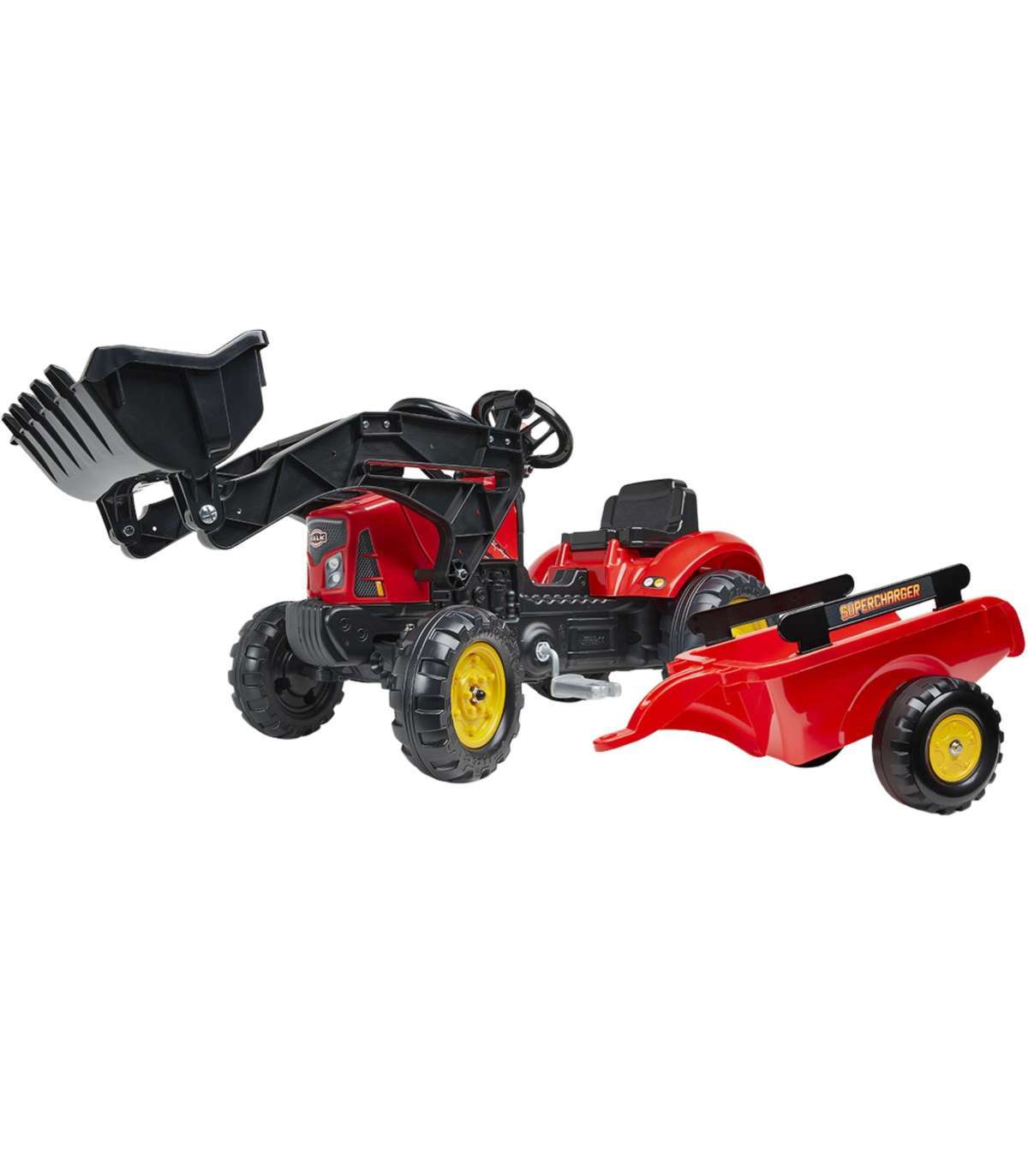 FALK Supercharger mängutraktor, punane, avaneva kapotiga, haagise ja koppiga, alates 2. eluaastast