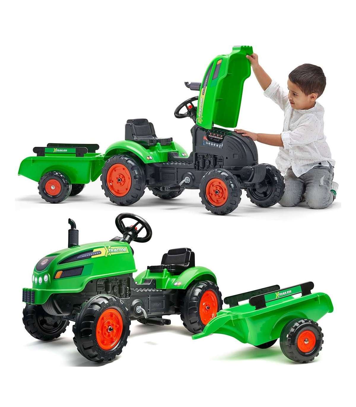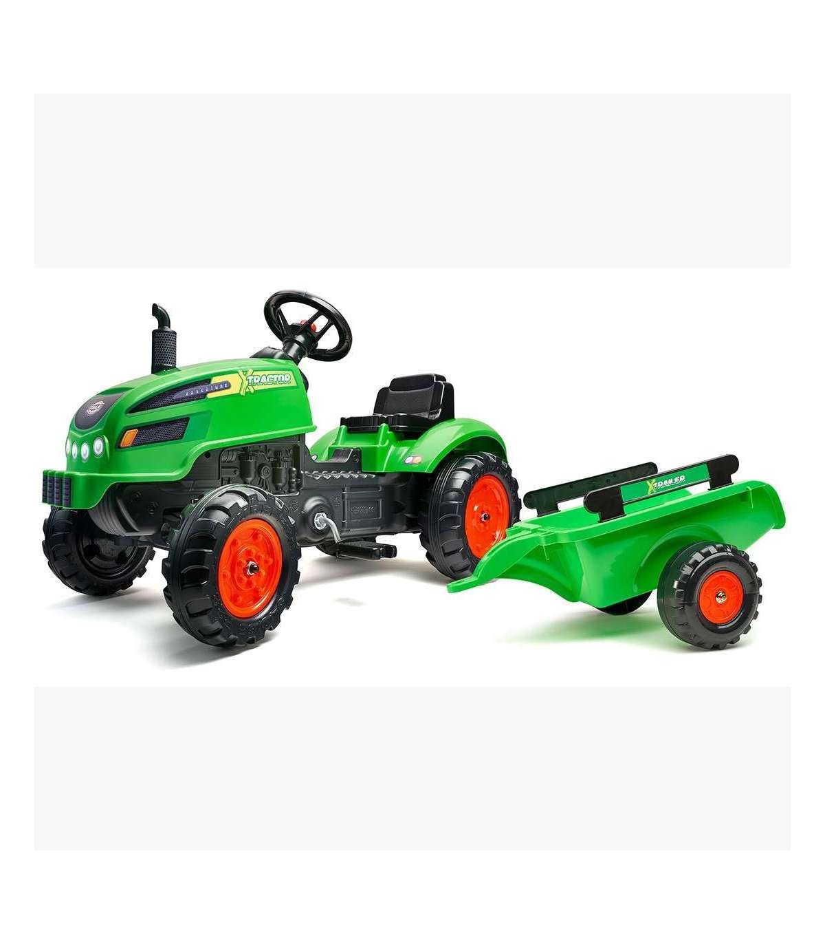 FALK X mängutraktor, roheline, koos haagise ja signaaliga, sobib alates 2. eluaastast