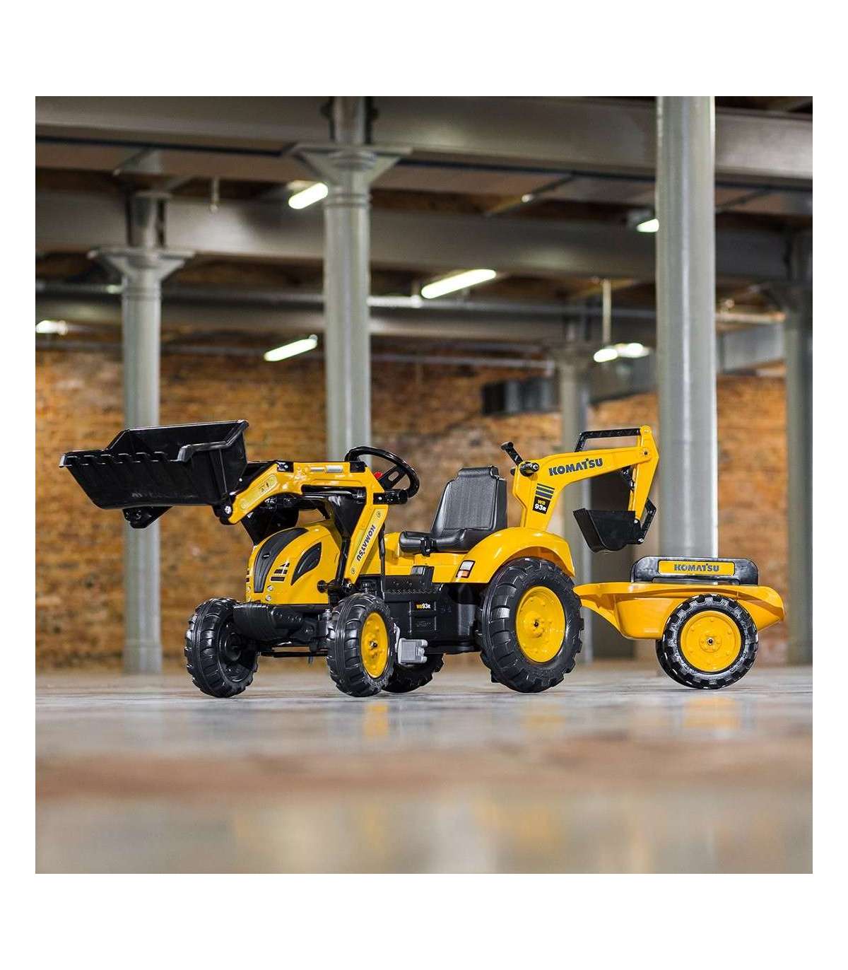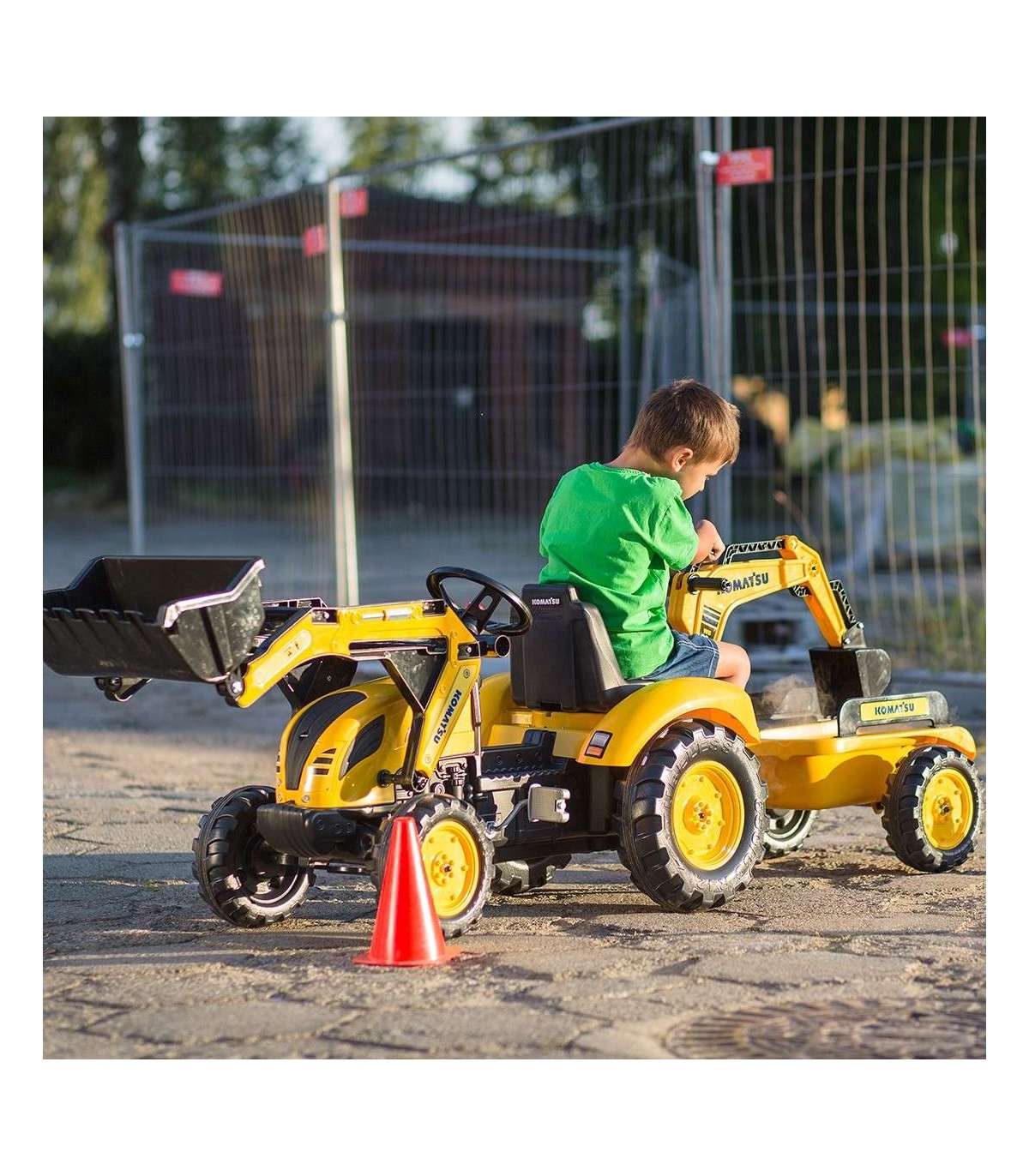 FALK KOMATSU pedaaltraktor ekskavaatori kopa ja haagisega, alates 2. eluaastast