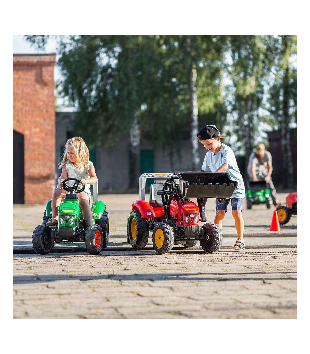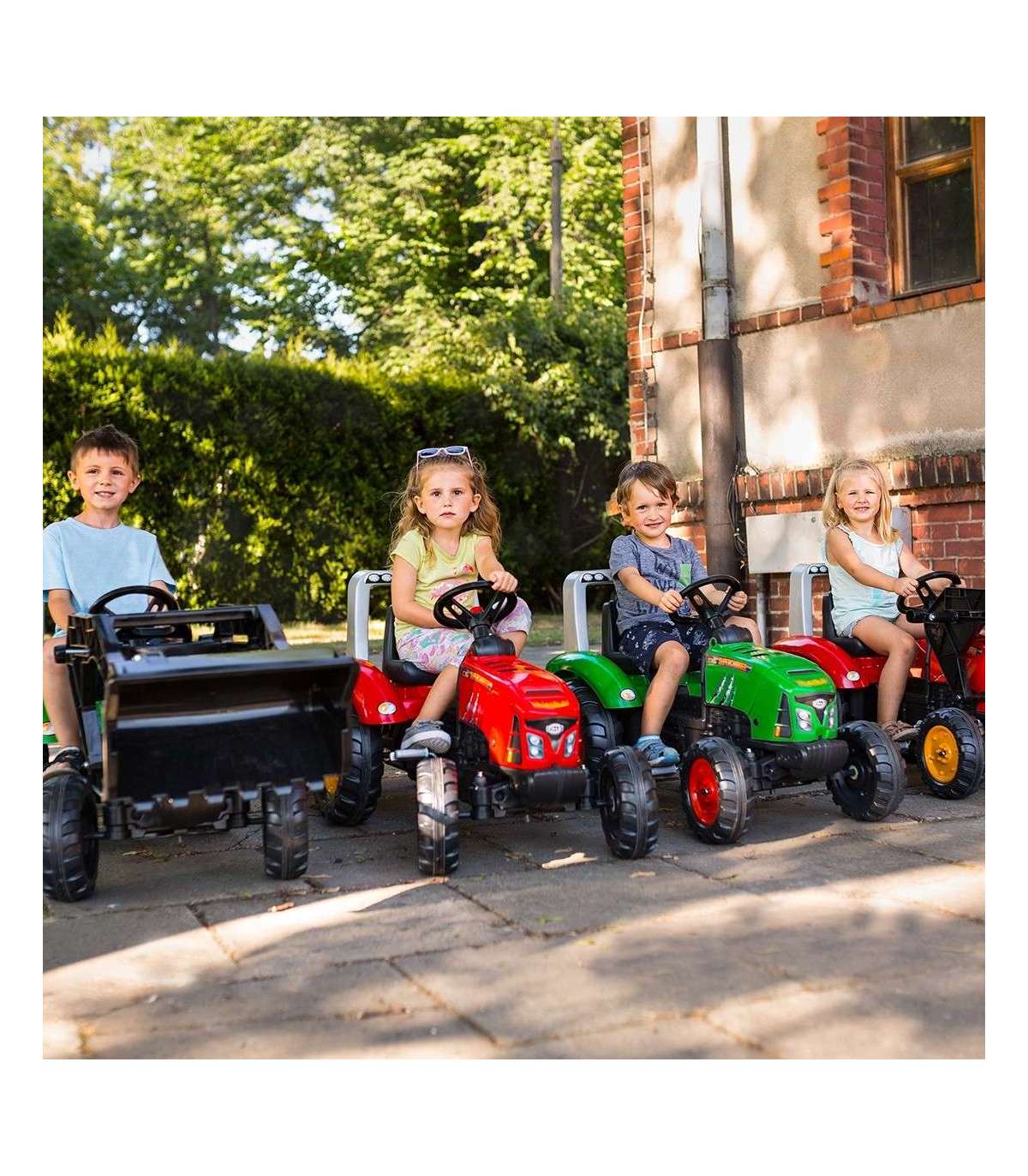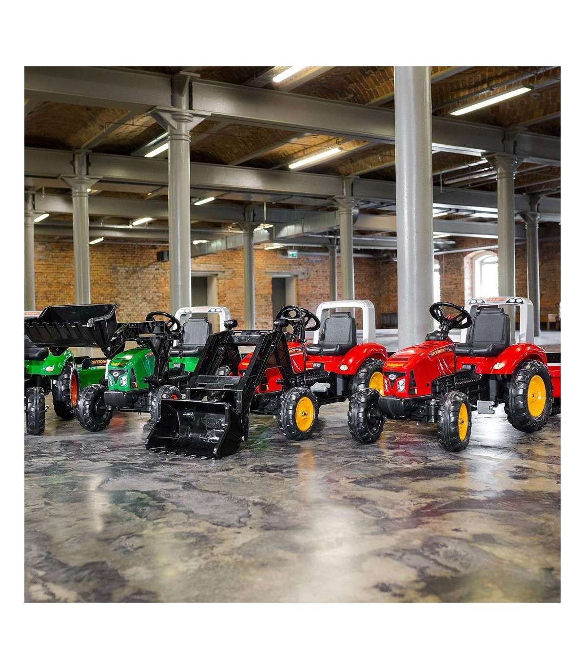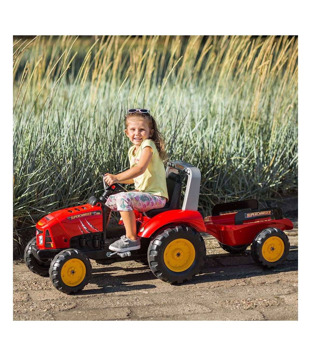 Red Supercharger pedaaltraktor haagisega tootjalt FALK on iga väikese traktorihuvilise unistus. Hoolikalt valmistatud, pöörates tähelepanu kõigele väiksemale detailile! Ükski farmer ei põlgaks sellist. Sõiduk on valmistatud kõrgekvaliteedilisest plastikust ja mõeldud lastele alates 3. eluaastast. Sõiduk on varustatud eemaldatava paneelidega haagise ja rooliga koos klaksoniga. Traktori rattad on valmistatud kõrgekvaliteedilisest plastikust. Traktoril on ka avatav kapott, mis imiteerib tõelist mootorit.