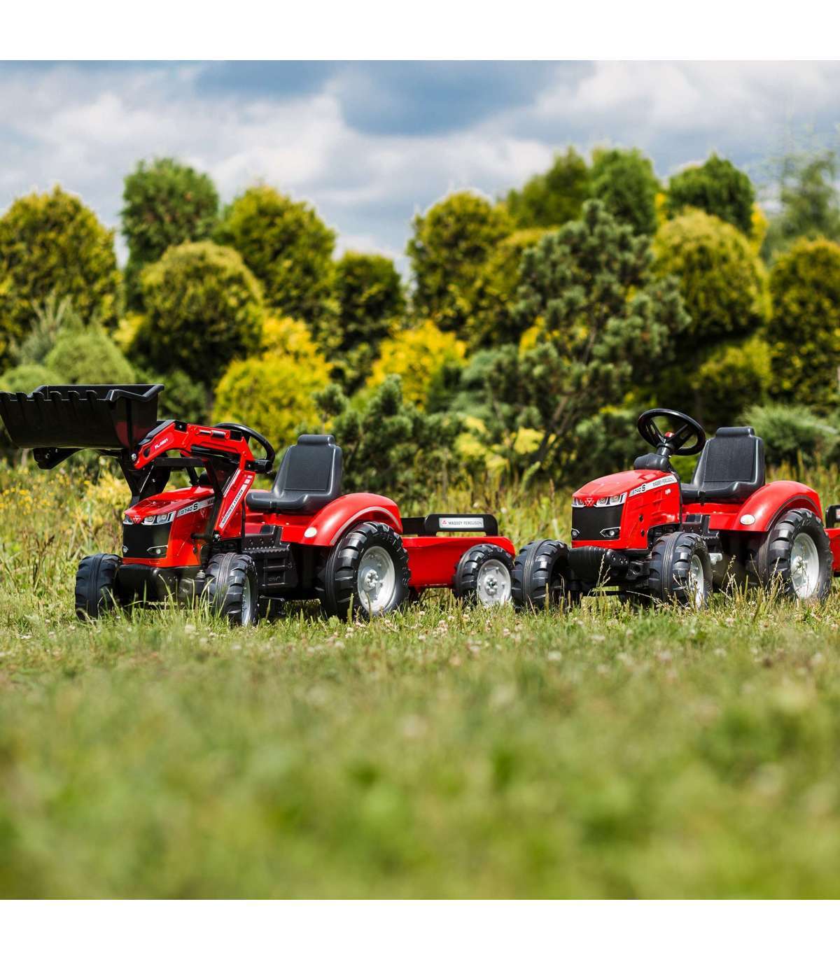 Massey Ferguson pedaaltraktor haagisega tootjalt FALK on paljude väikeste traktorihuviliste unistuste täitumine. Hoolikalt valmistatud, pöörates tähelepanu iga väiksema detaili! Ükski põllumees ei põlga sellist. Sõiduk on valmistatud kõrgeima kvaliteediga plastikust mõeldud lastele alates 3. eluaastast. Sõiduk on varustatud eeskoopa, eemaldatava haagise paneelidega ning rooliga, millel on signaal. Traktori rattad on valmistatud kõrgekvaliteedilisest plastikust.