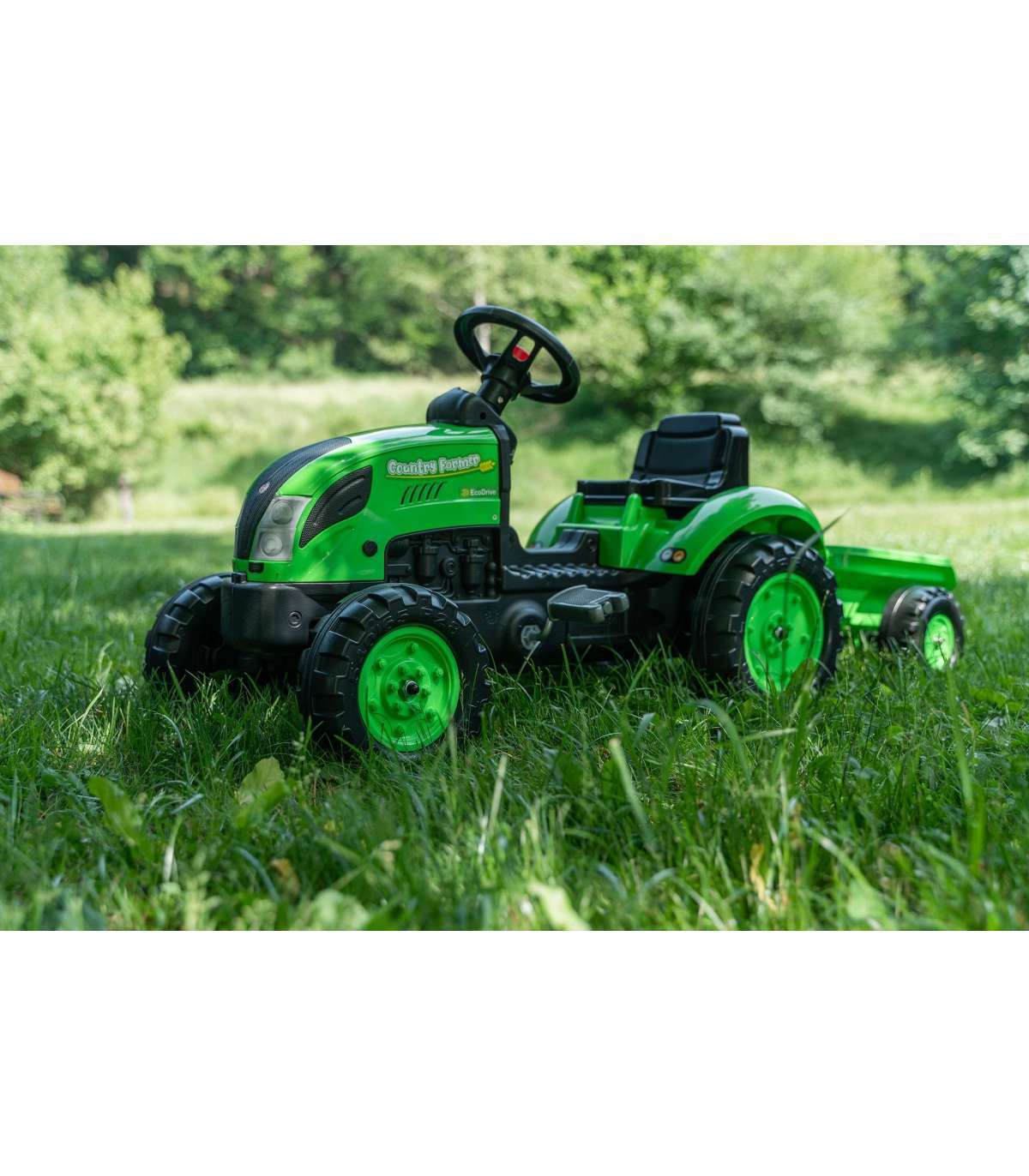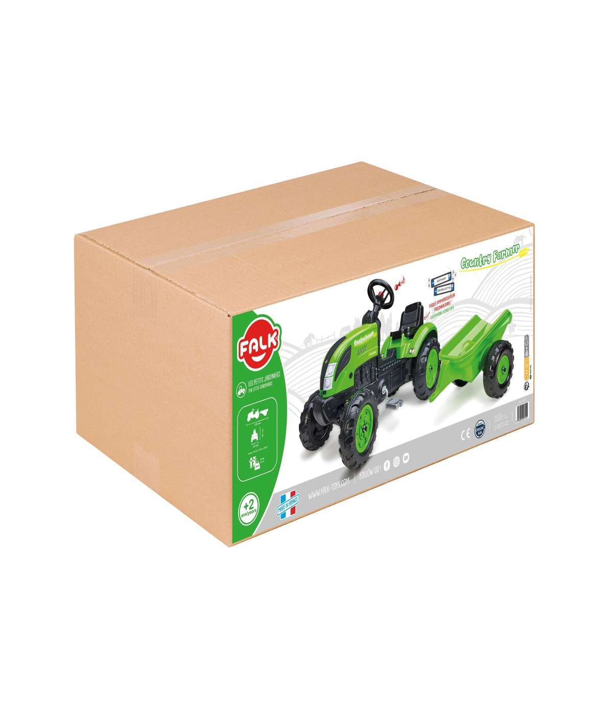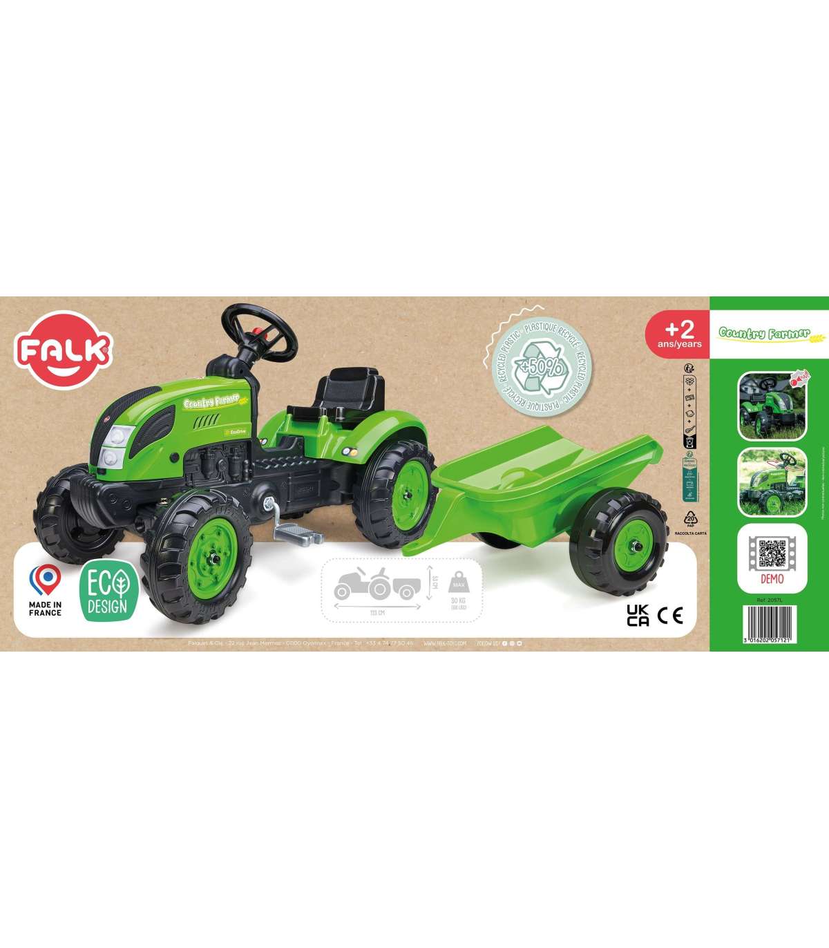 Falki Country Farmer pedaaltraktor on spetsiaalselt loodud 2-5-aastastele lastele. Väike aednik laadib ja transpordib meelsasti liiva, lehti, mulda ja kive ühest aia otsast teise kaasasoleva haagise abil. Lapsed võivad tunde tegeleda loomingulise mänguga, arendades samal ajal oskusi ja nautides õuesolekut.