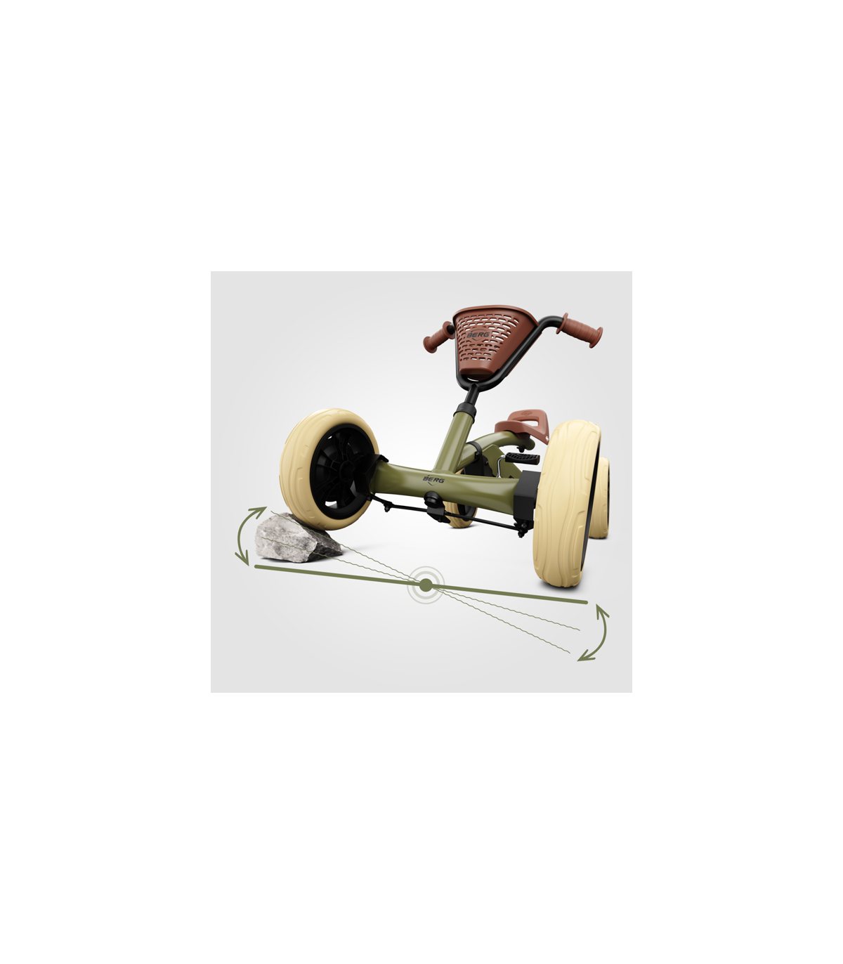 Kardil on agressiivne offroad disain ja see sobib ideaalselt lastele, kes naudivad pedaaliga sõitmist väljaspool teid. Turvalisus on kõigi Bergi disainitud sõidukite puhul esmatähtis. Madal raskuskese tähendab, et Berg Buzzy't on peaaegu võimatu ümber kallutada. Rehvid, mis ei lähe kunagi tühjaks. Teie lapsel on olemas nii edasi- kui ka tagasikäigu funktsioon. Ainulaadne Bergi "Direct Drive" süsteem pakub tuge, kui teie laps hakkab pedaalima, mistõttu on tal lihtsam liikuma hakata ja keskenduda eesolevale teele, mitte aga jalgade vahtimisele, kui ta tõukab. Kart kasvab ka koos teie lapse kasvuga tänu täielikult reguleeritavale roolile ja sadulale. BERG Buzzy on parim valik lastele, kes soovivad proovida uut kogemust. Omadused: Libisemiskindel iste , vaikselt liikuvad rattad , täielikult reguleeritav rool ja sadul, Bergi otsevedu aitab lapsel hõlpsasti pedaalimist alustada ja kardiga kiiresti startida , kvaliteetsed kuullaagrid pedaalides ja tagateljes, edasi- ja tagasikäigu funktsioon , madal raskuskese tagab täiendava ohutuse, elegantne, ergonoomiline disain