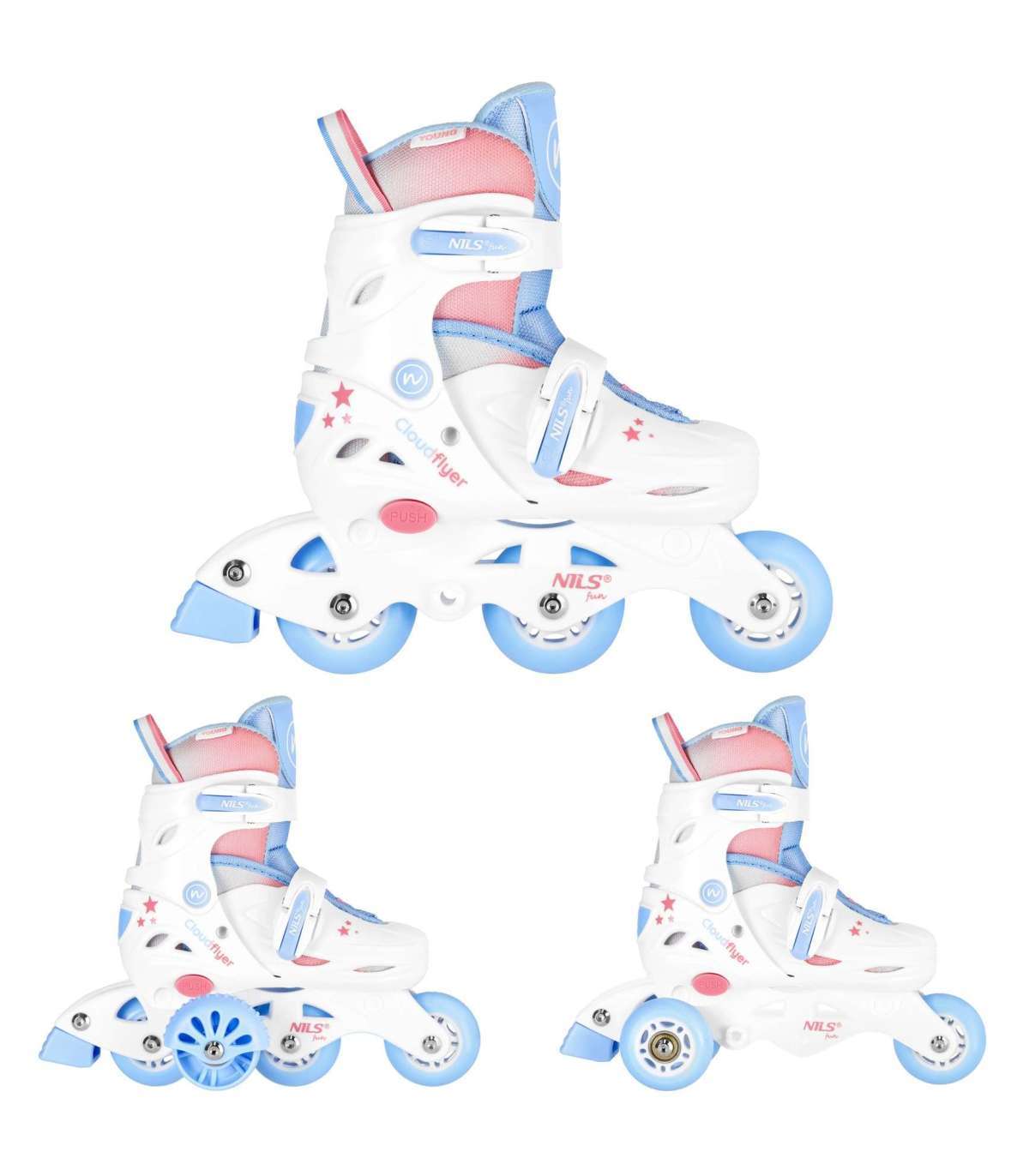 NJ1190 3-in-1 komplekt – inline/quad rulluisud, valge, suurus XS (26–29), Nils Fun