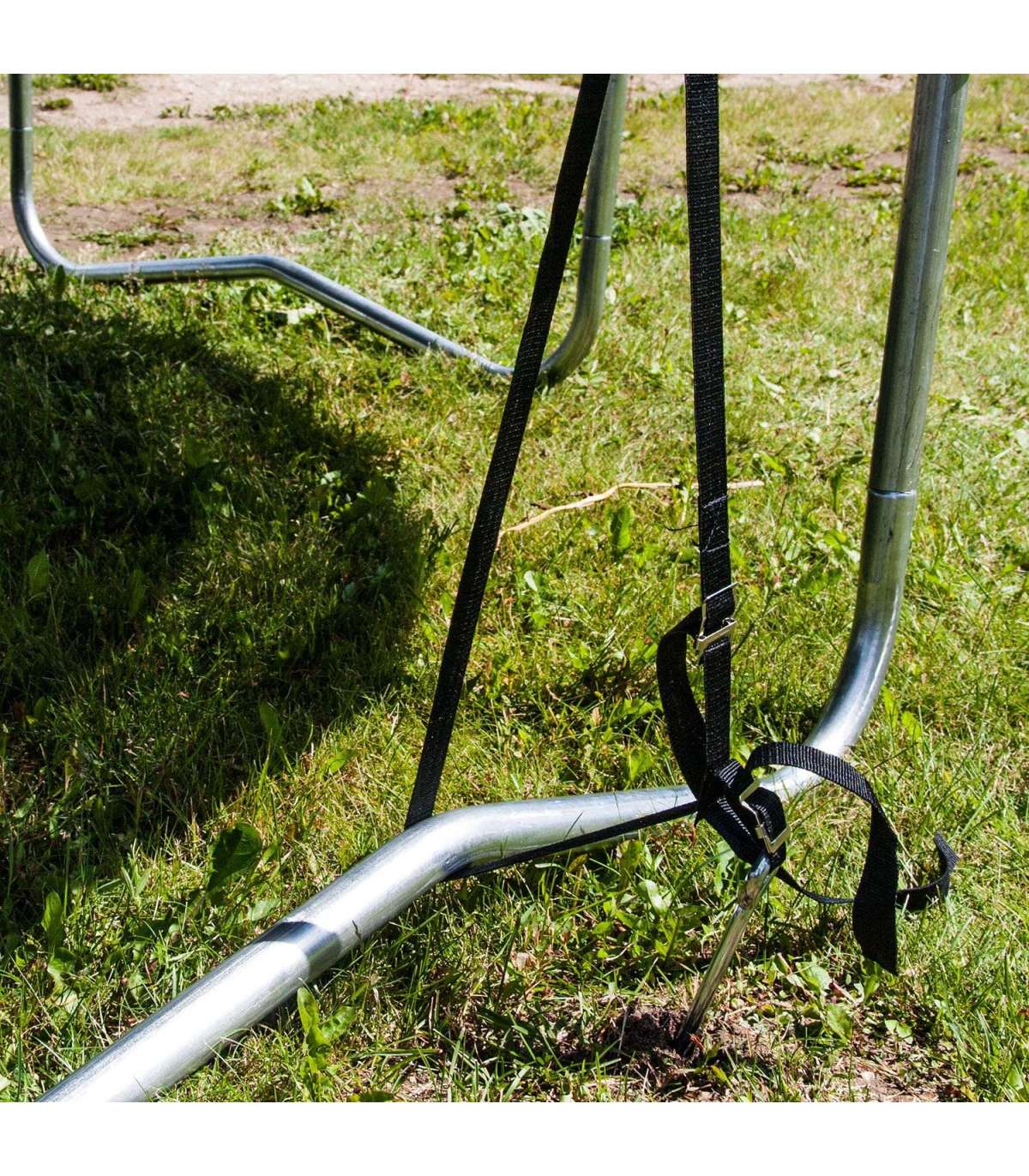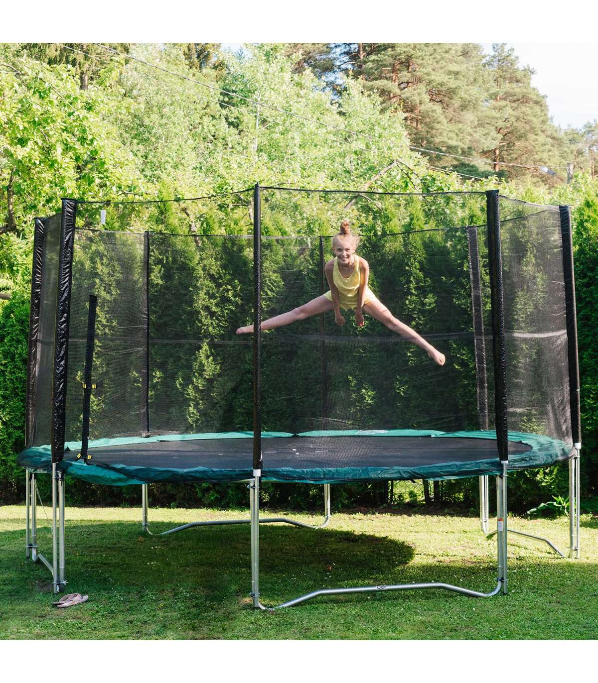 Batuut turvavõrguga D366cm, rohelise äärega. Batuut on tore võimalus värskes õhus aktiivseks ajaveetmiseks kogu perele. Batuudi kõrgus maast on 88cm. Elastne ja vastupidav hüppematt on valmistatud musta värvi polüpropeenist. Turvaääre pealmine kiht on valmistatud rohelisest PVC materialist, alumine pool on polüetüleenkangas. Kahe kihi vahel on 15+6mm polüetüleenvahust pehmendus. Turvaääre laius on 27cm. Batuudi raam ja jalad on valmistatud galvaniseeritud terastorust. Ülemise ääre toru mõõt on D45x1,5mm, jalatorude mõõt on D38x1,5mm. Batuudil on 72 vedru - 138mm/D25x3,2mm. Turvavõrk on valmistatud musta värvi polüestervõrgust. Sissepääsuava on tõmblukuga suletav. Komplekti kuulub kaheksa vahtplastist pehmendustega tugiposti. Tugipostid on valmistatud galvaniseeritud terastorust D25,4x1,1mm. Võrgu üldkõrgus on 268cm, kõrgus batuudi äärest on 180cm. Kaalupiirang 180kg. Pika kasutusaja ja ilmastikutingimuste mõjul kulunud batuudi osad on võimalik välja vahetada. Varuosadena on saadaval, turvavõrk, turvaäär, hüppamismatt ja batuudivedrud. HOIUSTAMINE: batuudi eluea pikendamiseks soovitame see suvehooaja lõppedes lahti monteerida ja hoiustada kuivas, hea ventilatsiooniga ruumis. Puhastage ja kuivatage matt ja turvaäär enne hoiule panekut.