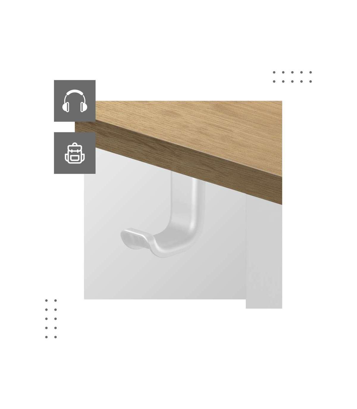 - Built-in headphone hook