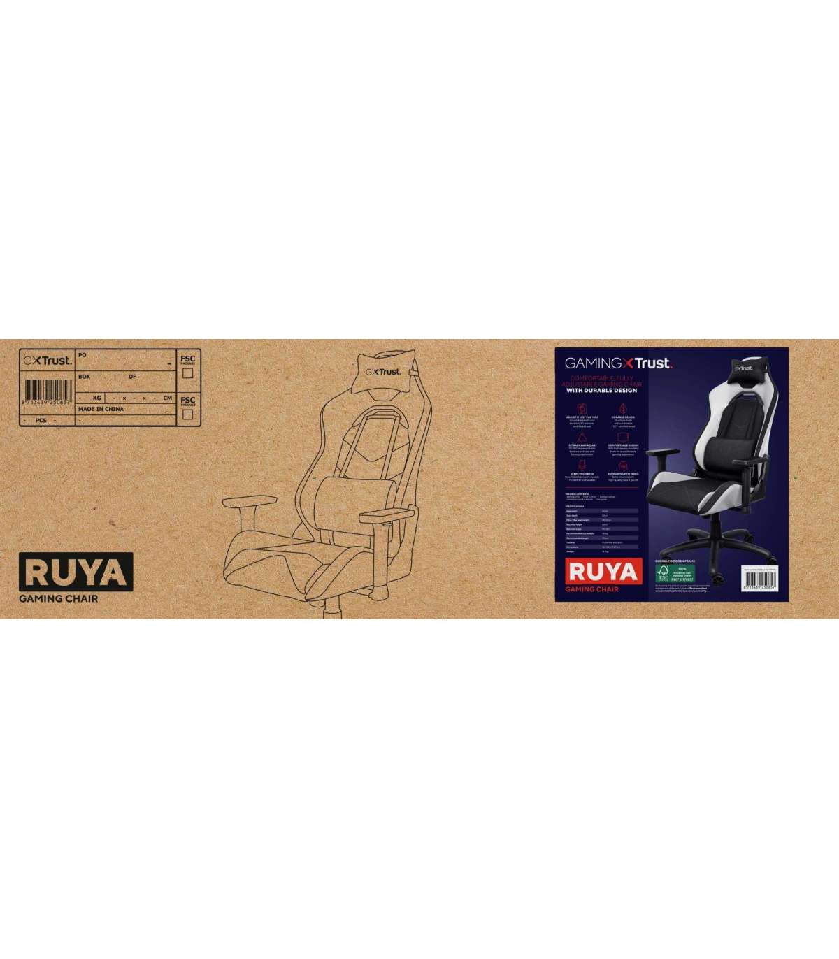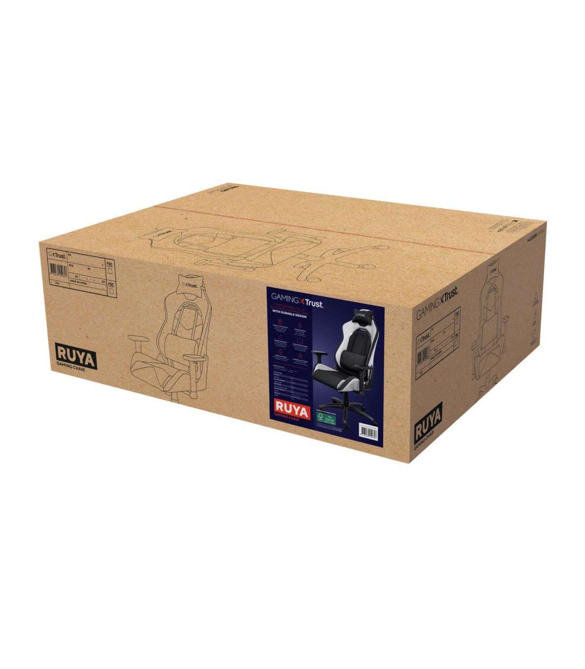 - Trust GXT 714 RUYA. Product type: Universal gaming chair, Maximum user weight: 150 kg, Maximum user height: 195 cm. Width: 710 mm, Depth: 750 mm, Height (min): 134 cm. Quantity per pack: 1 pc(s)