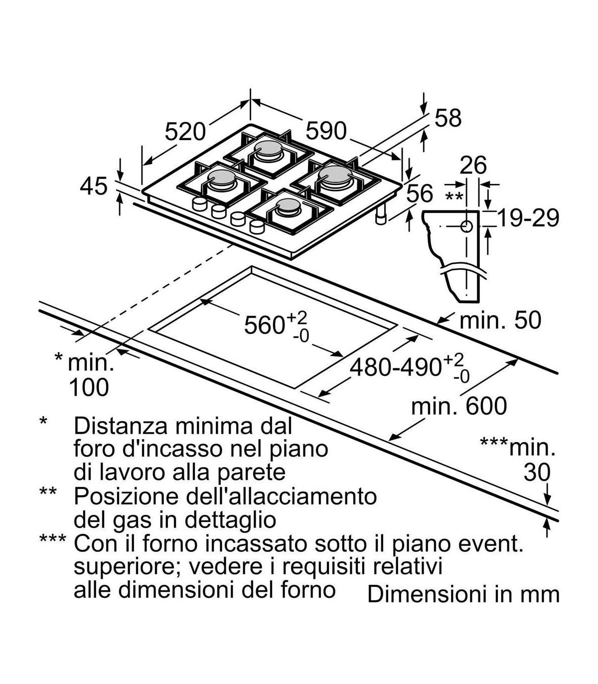- Hob width size