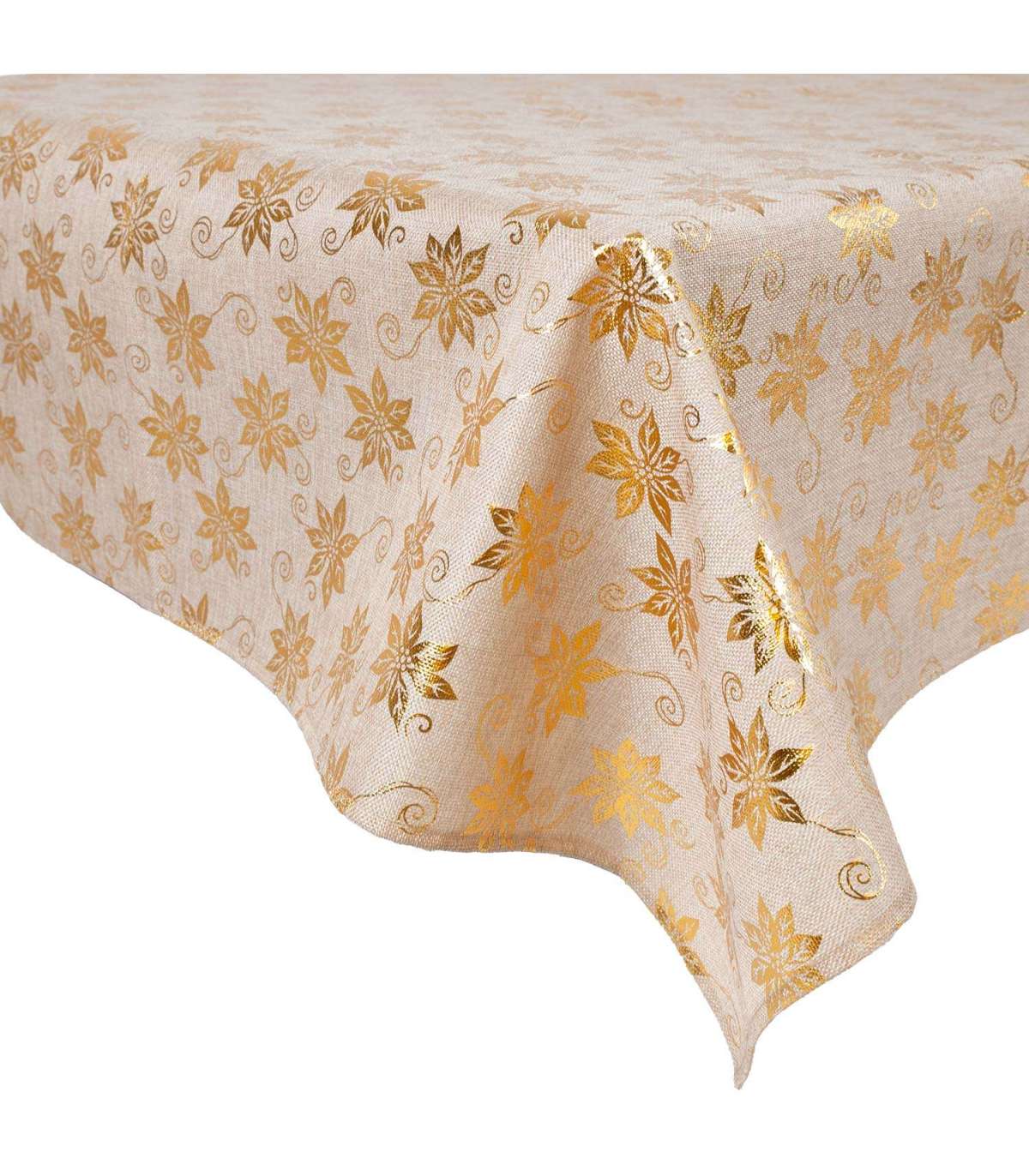Laudlina GLORY 142x260cm, kuldsed jõulutähed. Materjal: 100% polüester, kangas 567. HOOLDUS: võib pesta temperatuuril 30 kraadi pesumasinas.