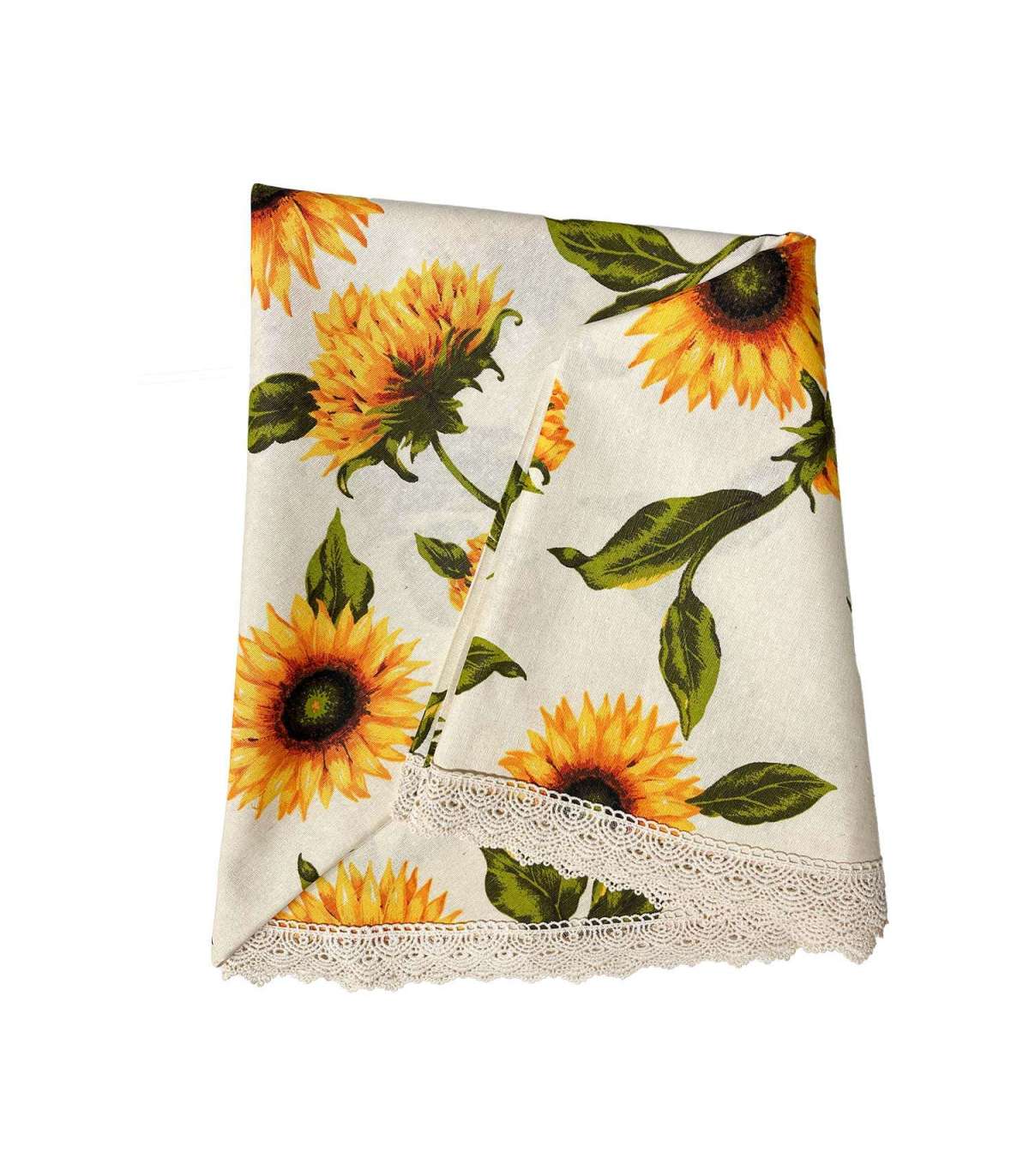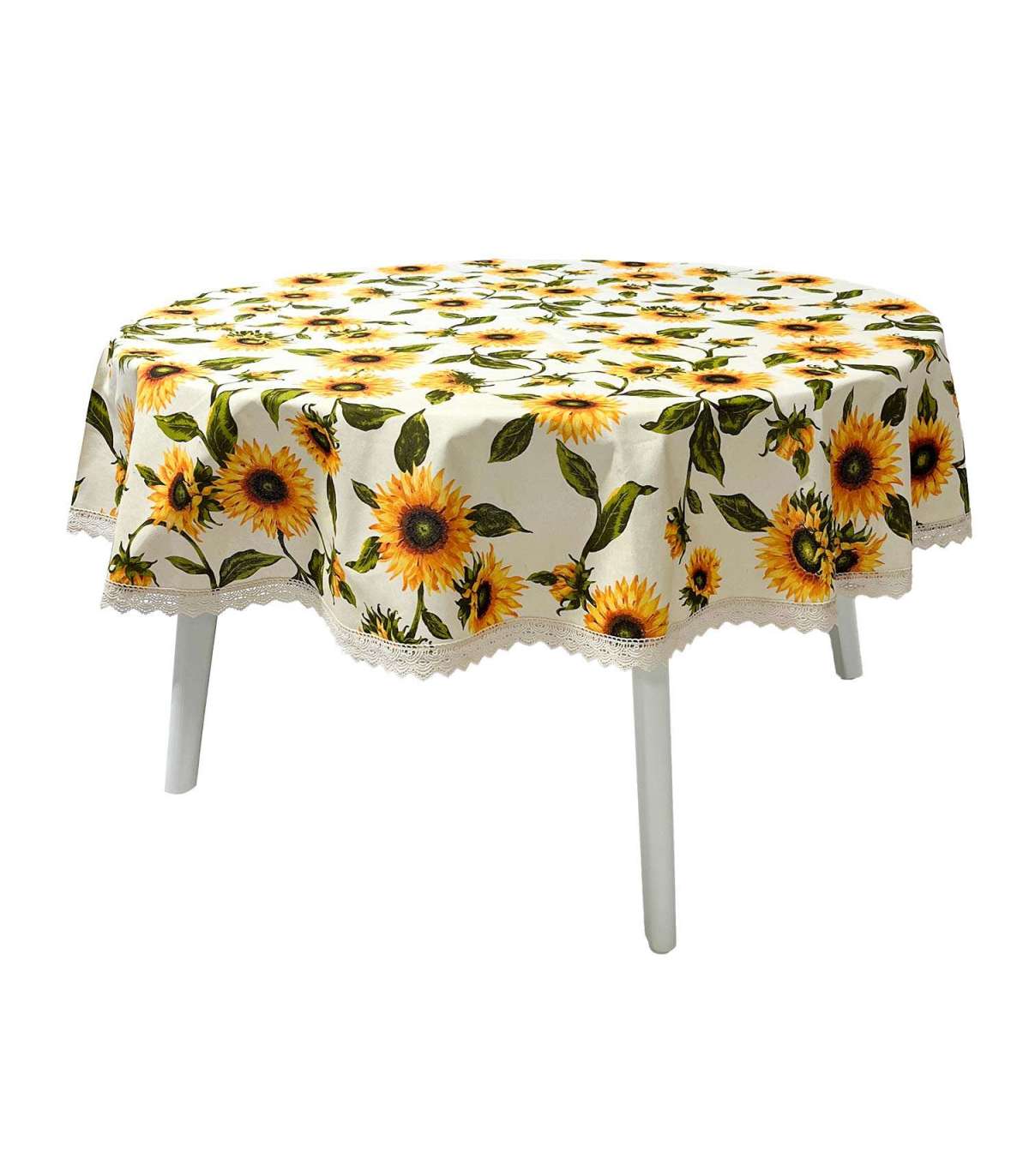 Laudlina LONETA NEW pitsiga, D170cm, päevalilled. 50% polüester, 50% puuvill, kangas 424. HOOLDUS: võib pesta temperatuuril 30 kraadi pesumasinas.