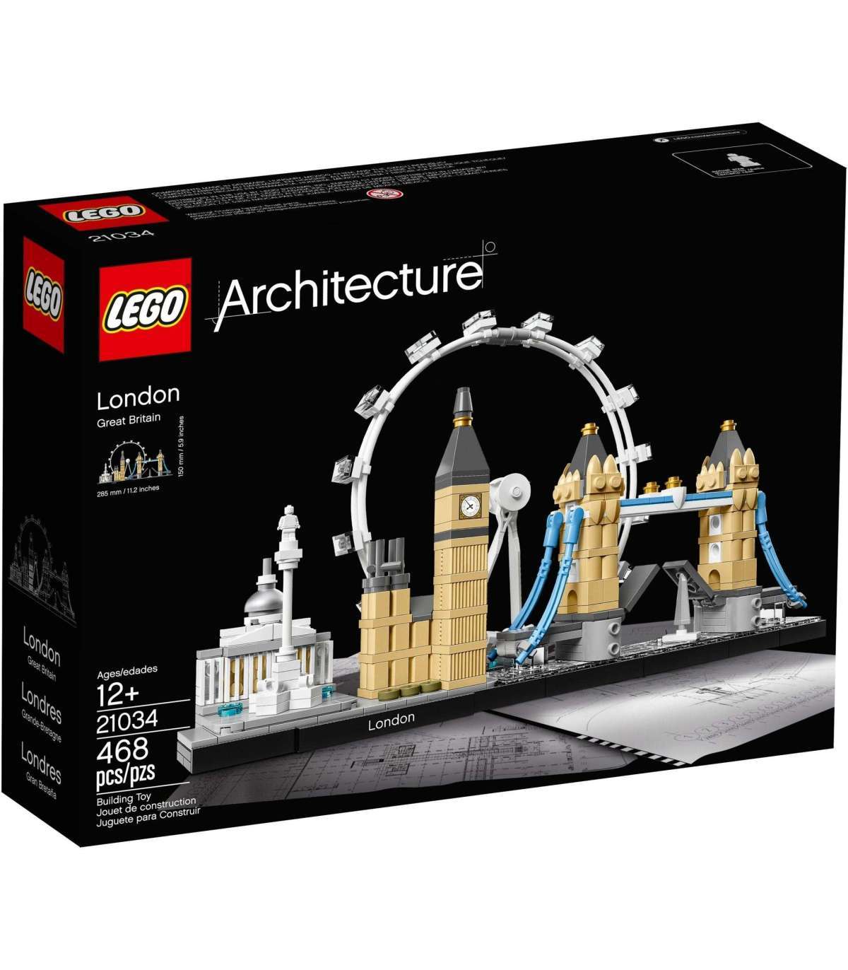 Jäädvusta inspireeriva siluetina Londoni arhitektuuriline olemus selle võrratu komplekti abil, mis toob kokku legendaarse Rahvusgalerii, Nelsoni samba, London Eye, Big Beni (Elizabethi torni) ja Toweri silla. Iga tõetruude värvide ja õigete proportsioonidega LEGO® ehitis pakub ainulaadset ja rahuldust pakkuvat ehituskogemust. Londoni Thamesi jõgi on kujutatud plaatidest alusplaadil ning lisab sellele imelisele mudelile, mis keskendub maailma ühe dünaamilisema linna hämmastavale arhitektuurilisele mitmekesisusele, täiendava mõõtme ja tõepärase mulje.