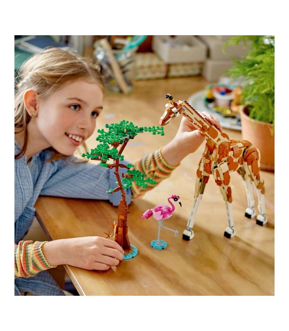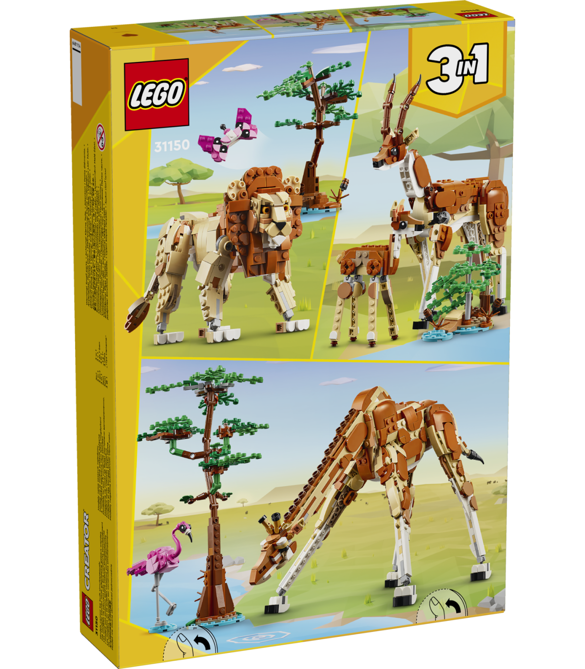 • 3 safarilooma ühes komplektis koos lõvimänguasjaga – 9-aastased ja vanemad tüdrukud ja poisid saavad selle LEGO® Creator metsikute safariloomade komplektiga samade klotside abil ehitada ja ümber ehitada 3 erinevat mudelit