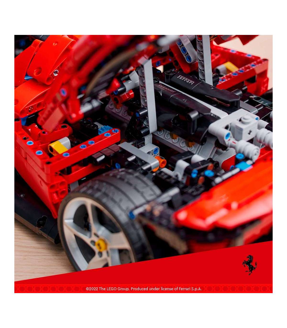 • Karbi avamine kui omaette elamus – eksklusiivses pakendis automudeliga on kaasas pilkupüüdev kohvilaua stiilis brošüür, mis sisaldab ülevaadet LEGO® disainerite ja Ferrari vahelisest koostööst