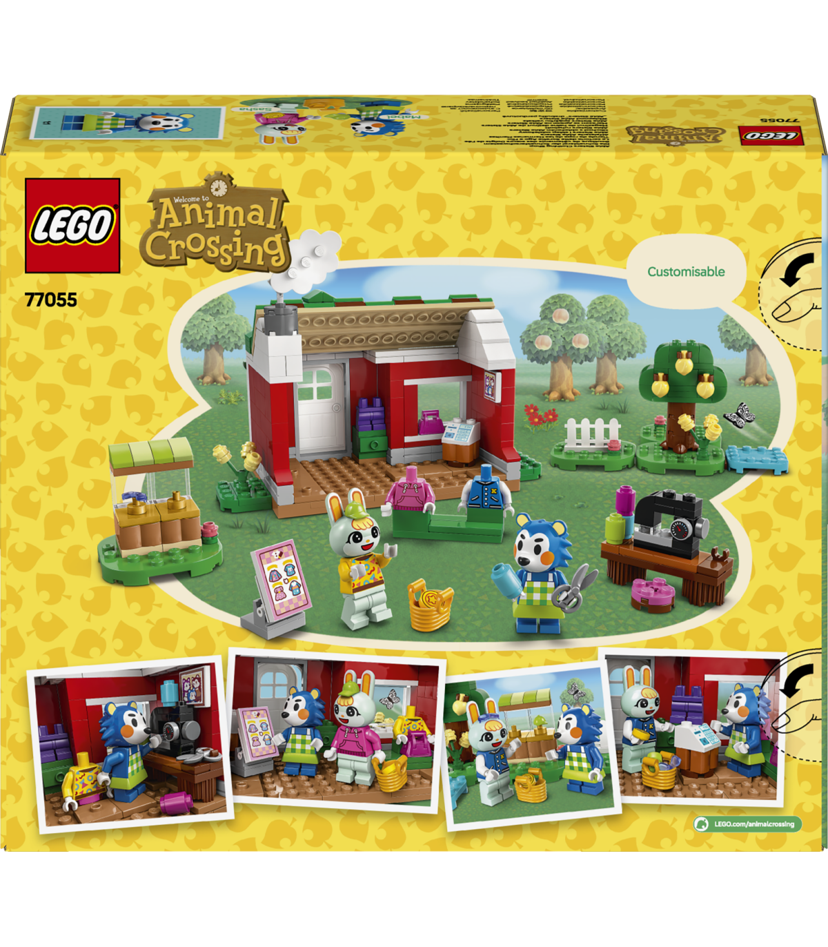 • Kohandatav mänguasi – selle komplektiga on kaasas modulaarsed alusplaadid, et lapsed saaksid muuta oma komplekti kujundust ning isegi vahetada ukse ja katuse teiste LEGO® Animal Crossing™ komplektidega, mida müüakse eraldi
