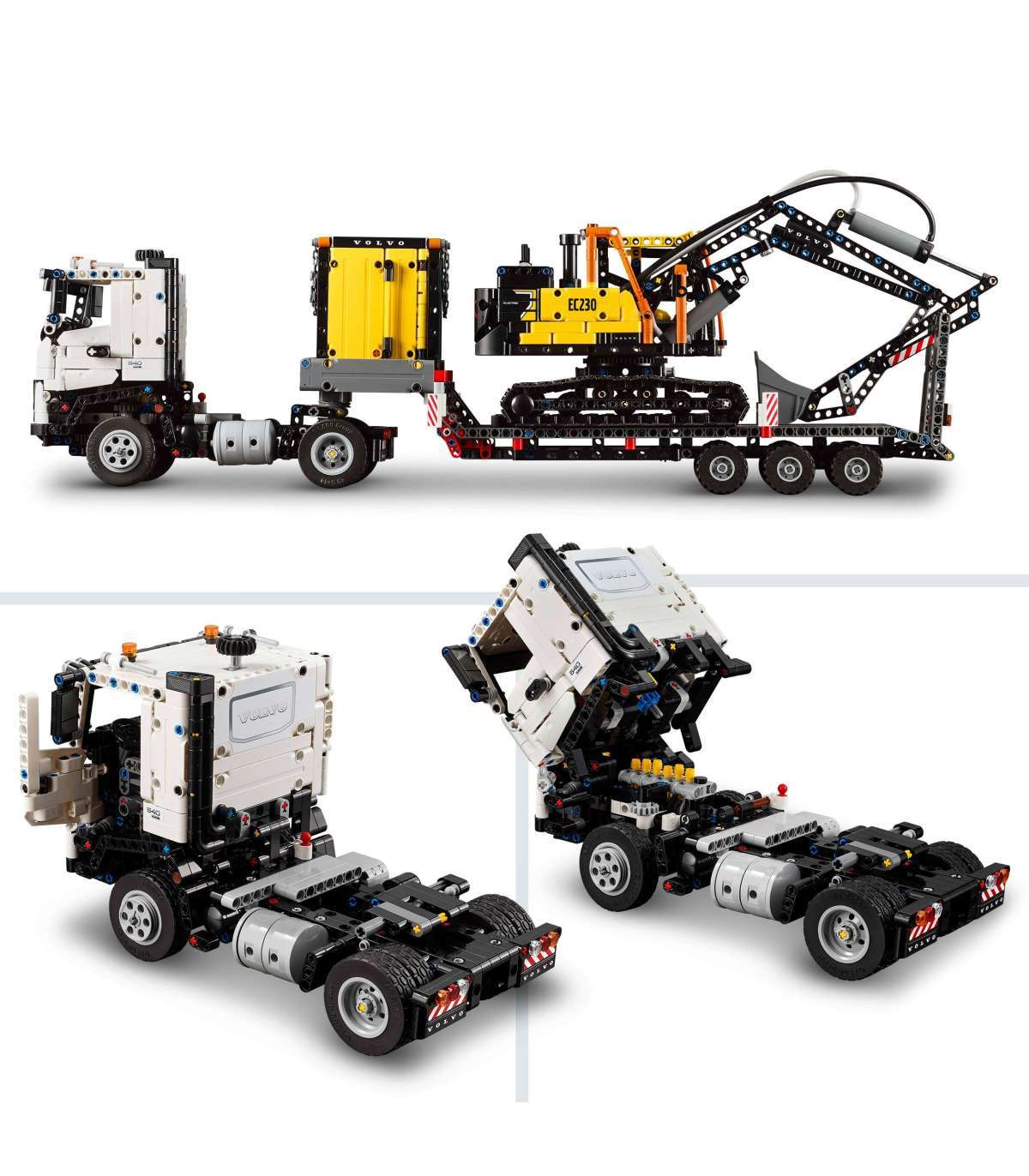 • Volvo veoki mänguasi koos kokkupandava ekskavaatoriga – innusta lapsi ehitama oma ehitusveokit lameda haagise, mänguekskavaatori ja laadimisjaamaga