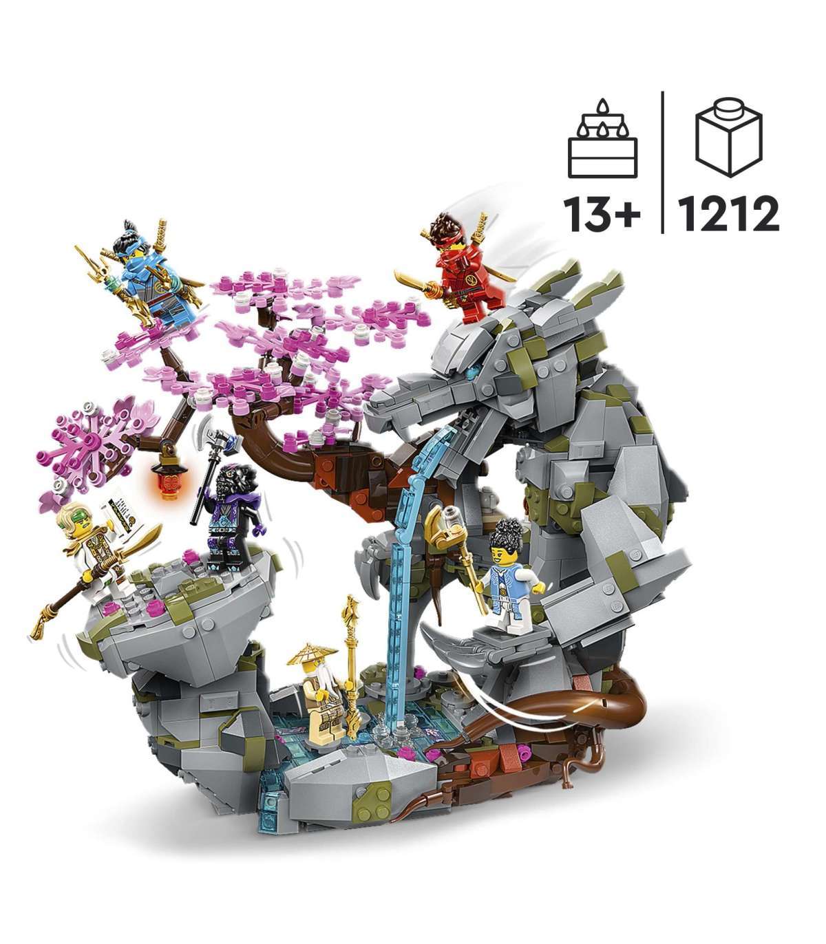 • Draakoni pühamu seiklusmängukomplekt lastele – 13-aastased ja vanemad poisid ja tüdrukud saavad ehitada, mängida ja esitleda seda suurt Draakonikivi pühamut koos liikuvate funktsioonide ja paljude NINJAGO® tegelaste minifiguuridega