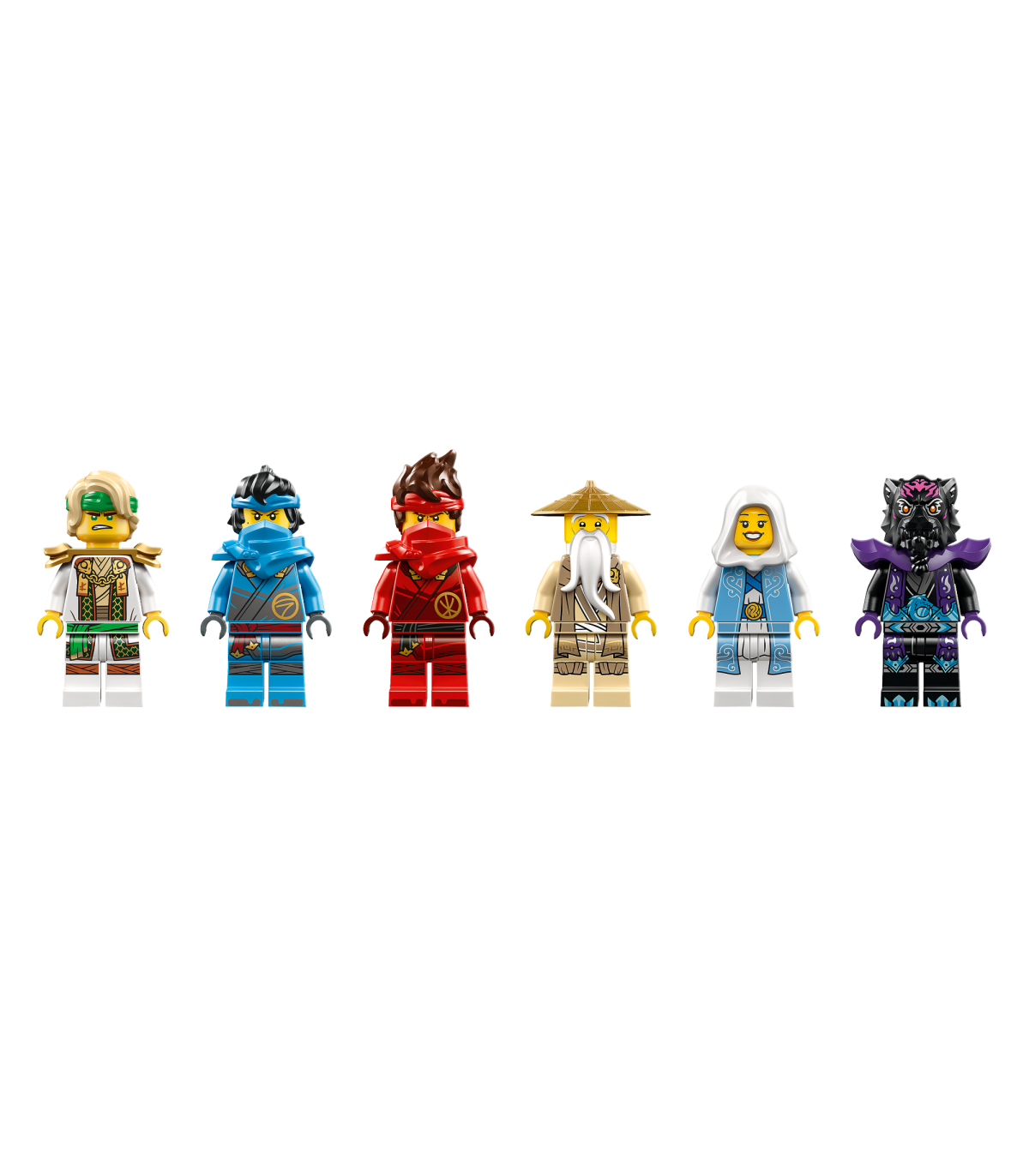 • 6 NINJAGO® minifiguuri – kokkupandava mudeliga on kaasas meister Lloyd, meister Wu, lord Ras, Nya, Kai ja Euphrasia, et lapsed saaksid mängida telesaate „NINJAGO Dragons Rising“ 2. hooaja lugusid