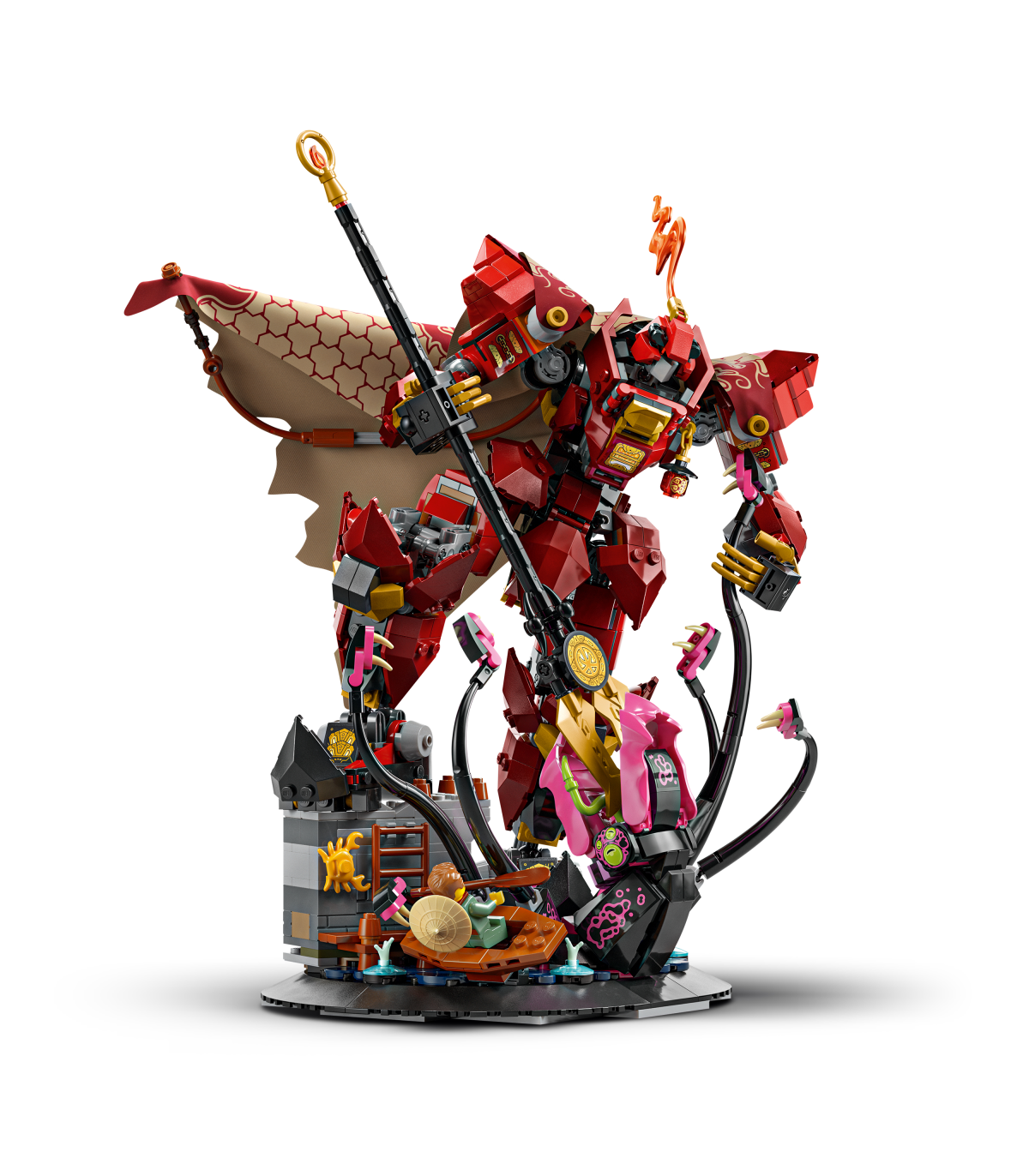 • Interaktiivne mudel – ninjafännid saavad mudeli selle alusest eemaldada, et lavastada lahinguid sarjast NINJAGO® Legends Monstrosity muudetava asendiga roboti ja liikuvate kombitsatega koletise vahel