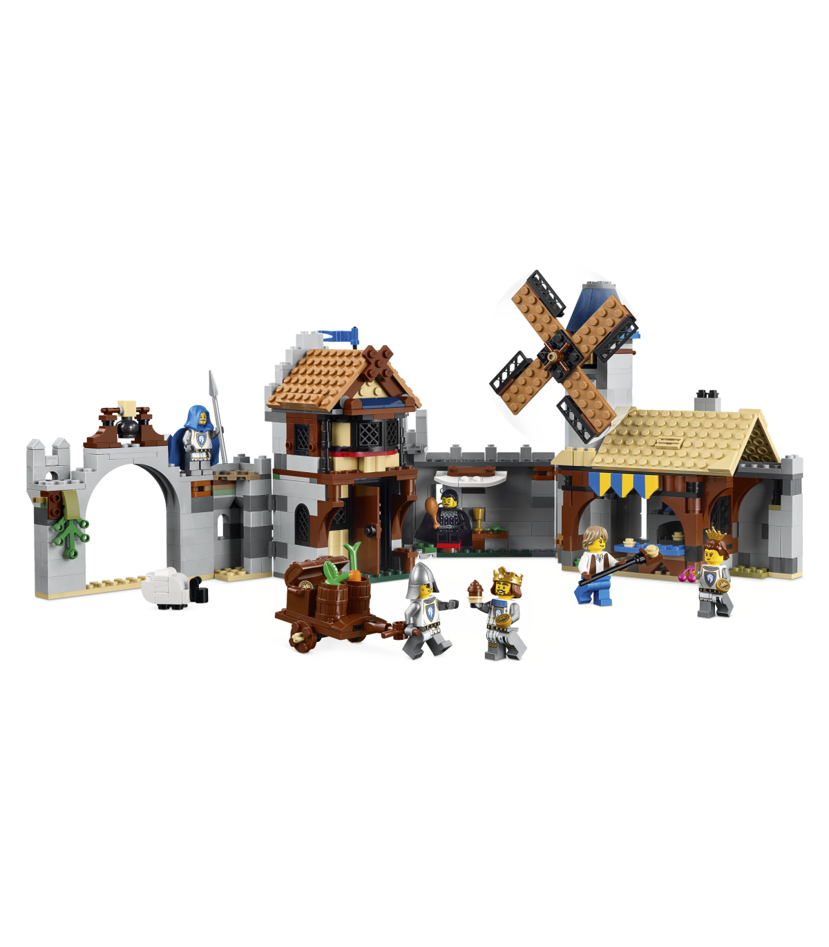 • 6 minifiguuri – LEGO® komplektis on 6 keskaegset tegelast: hoburüütli kuningas, hoburüütlist tšempion, hoburüütlist vibulaskja, hoburüütlist odamees, sepp ja must rüütel ning 2 muudetava asendiga hobust