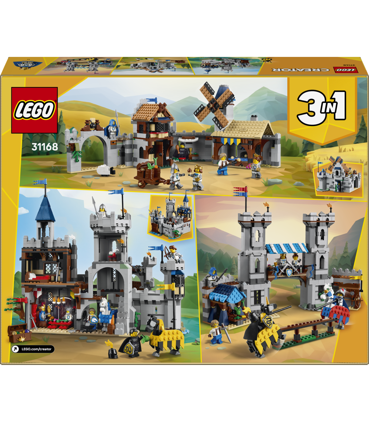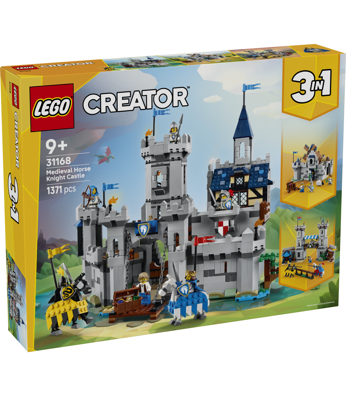 • 3 keskaegset ehitusmänguasja ühes karbis – LEGO® Creator 3 ühes keskaegse hoburüütli lossi ehitusmänguasja saab ümber ehitada veel kaheks mudeliks, kasutades samu klotse