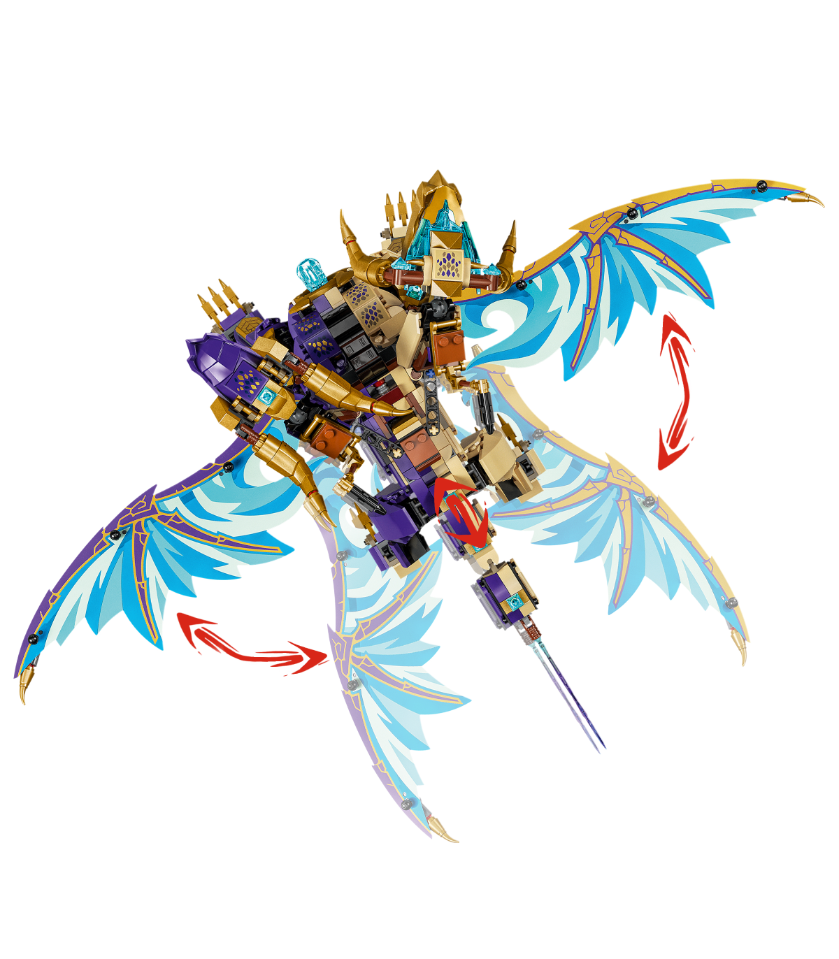 • Interaktiivne NINJAGO® draakon – lapsed saavad aktiveerida laskuri draakoni rinnal ja liigutada draakoni suuri fooliumtiibu edasi-tagasi, kasutades seljal olevat kangi