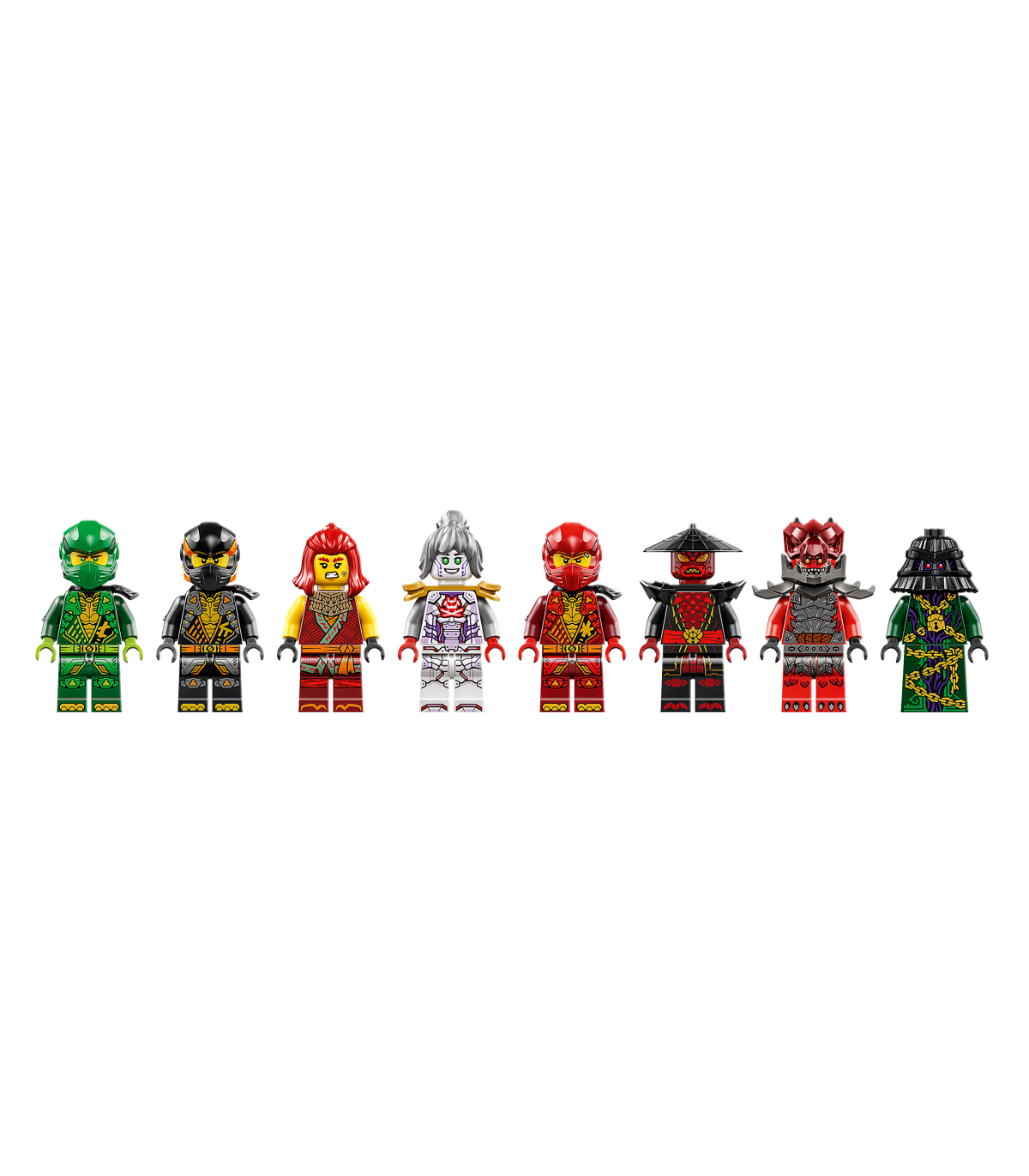 • 8 NINJAGO® minifiguuri – selle LEGO® ehituskomplektiga on kaasas ninjasõdalased Lloyd, Cole, Wyldfyre ja Kai ning nende liitlane Pixal, lisaks kurikaelad Drix, Zarkt ja draakonisõdalane