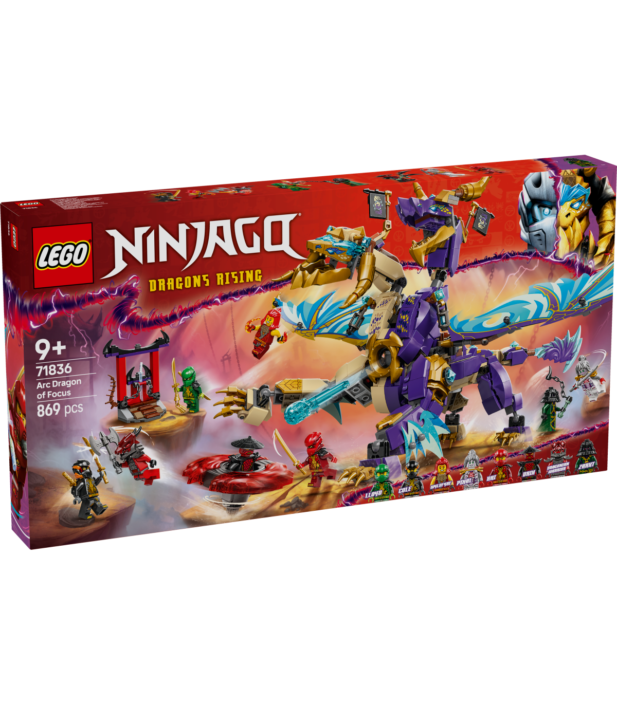• NINJAGO® draakonimänguasi lastele – kahepealine Fookuse draakon Arc võimaldab 9-aastastel ja vanematel poistel ja tüdrukutel taasetendada põnevaid stseene telesarja NINJAGO Dragons Rising 3. hooajast