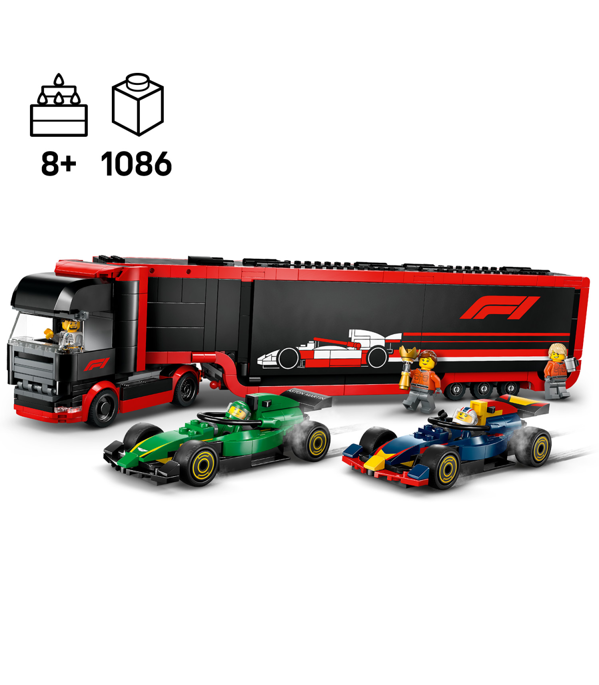 • LEGO® F1® transpordiveoki mängukomplekt – vormel-1® noortele fännidele vanuses 8+ meeldib kindlasti see esmaklassiline komplekt LEGO® City F1® veok RB20 ja AMR24 F1® autodega