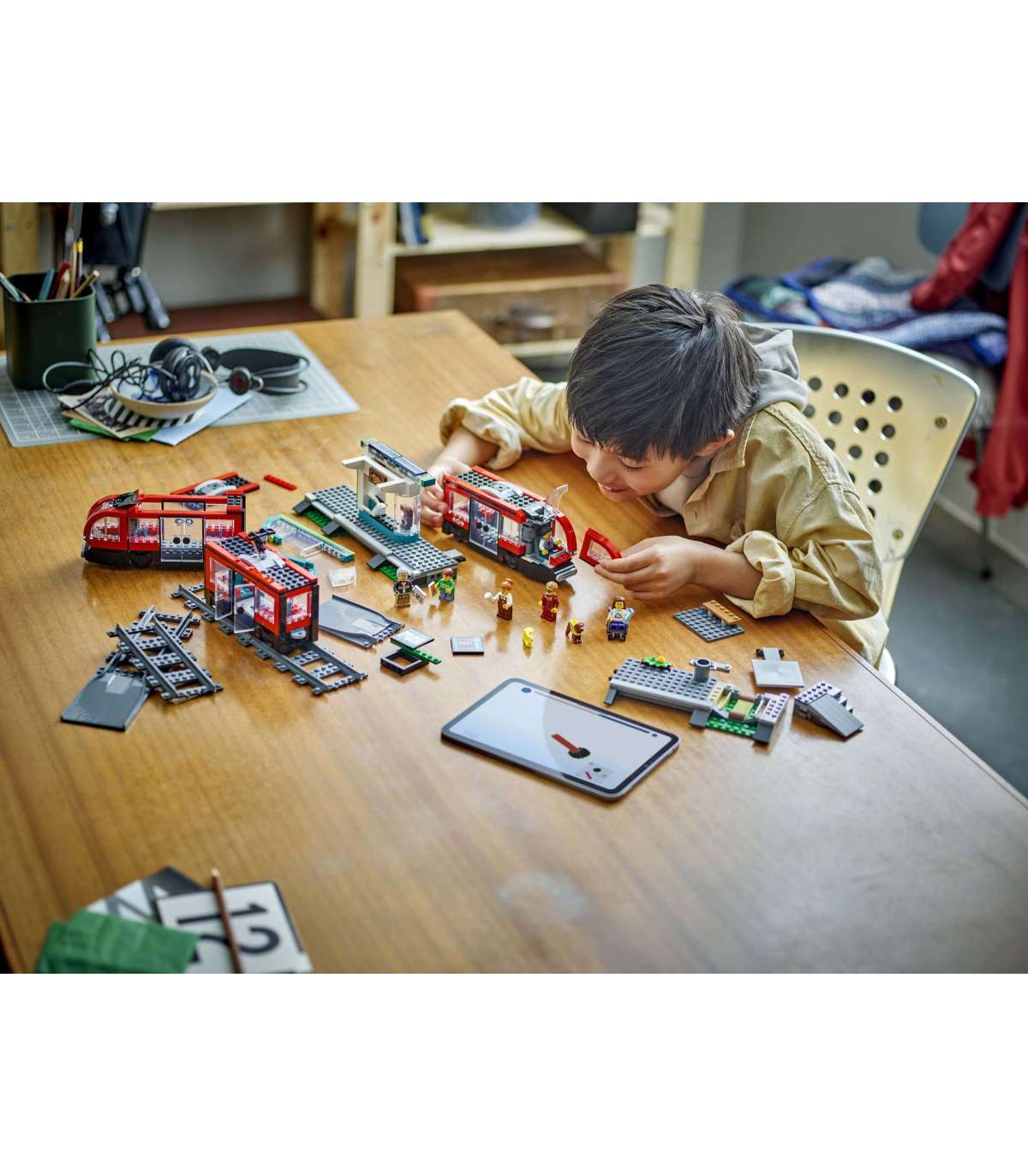 • Ehitusmänguasjad lastele, kes armastavad mängida – mängutrammis on istekohad minifiguuridest reisijatele ja avanevad topeltuksed, samas kui jaamaplatvormil on pikendatavad sillaplaadid pardaleminekuks