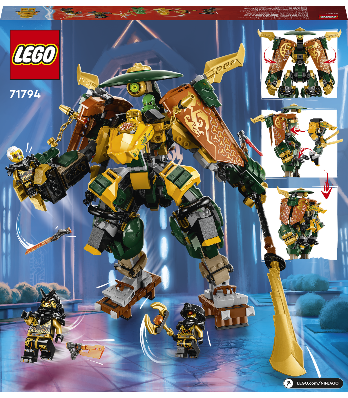 • Unikaalne kahe robotiga mängukomplekt – alates 9-aastased ninjafännid saavad komplektiga Lloydi ja Arini ninjatiimi robotid (71794) taasluua treeningu- ja lahingustseene NINJAGO® telesarjast „Dragons Rising“