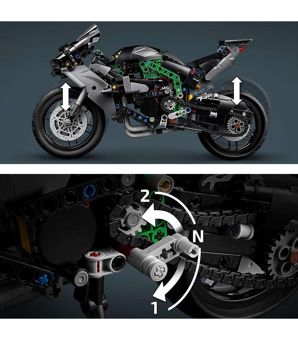 • Mootorratta mänguasja kingitus 10-aastastele ja vanematele lastele – LEGO® Technic Mootorratas Kawasaki Ninja H2R on täis autentseid funktsioone ning pakub poistele ja tüdrukutele rahuldustpakkuvat ehitusprojekti
