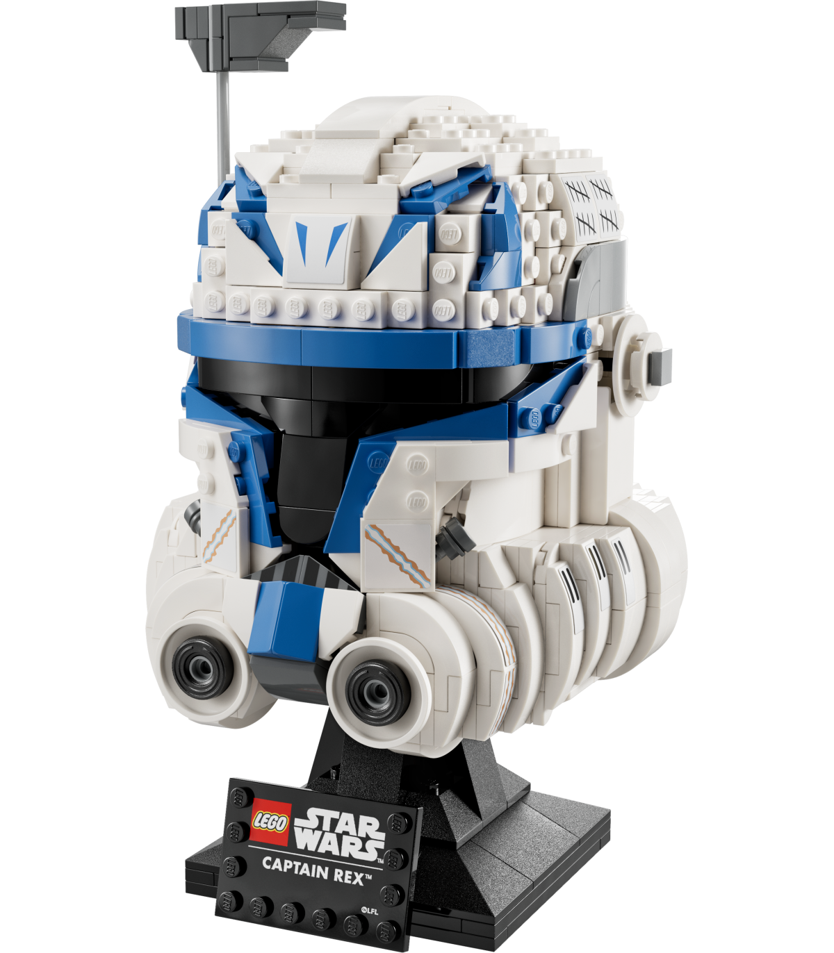 • Loodud esitlemiseks – kui taastad kapten Rexi kiivri elutruud detailid LEGO® klotside abil ja paned selle klotsidest kokkupandavale nimesildiga alusele vaatamiseks välja, elad uuesti läbi filmi „Star Wars: Kloonide sõda“ dramaatilised stseenid