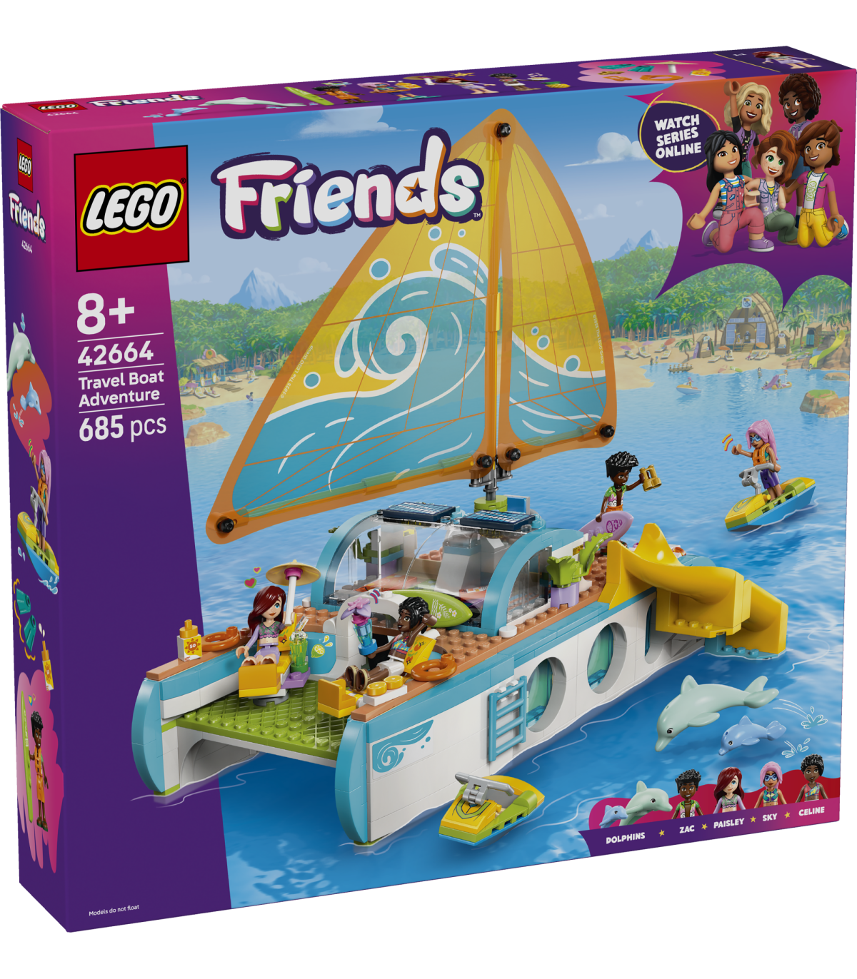 • Lugusid sisaldav ehituskomplekt – selle 8-aastastele ja vanematele tüdrukutele, poistele ja noortele purjetajatele mõeldud reisilaevaseiklusega on kaasas 4 mininukku, 2 delfiini ja tarvikud loominguliseks mänguks