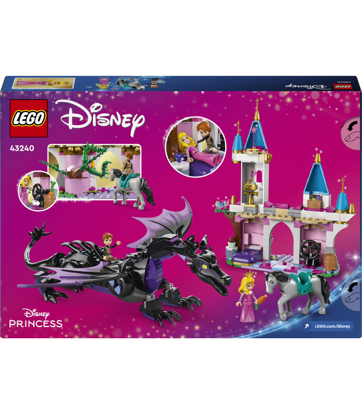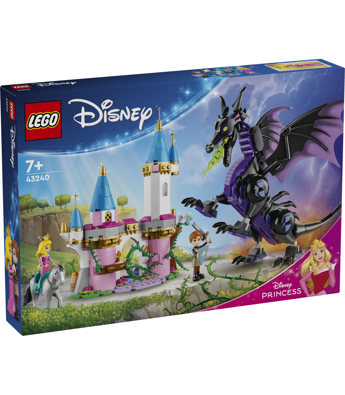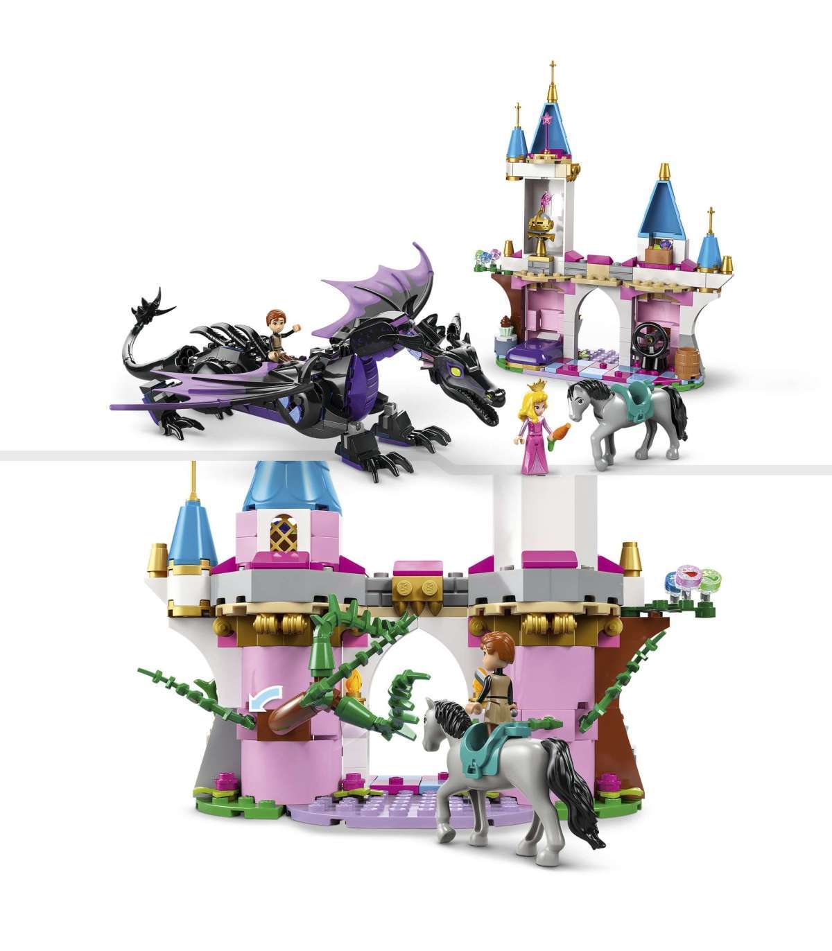 • Muudetava asendiga mudel – kokkupandavate tiibadega muudetava asendiga draakoniehitusmänguasi sild ja torniosa, Aurora ja Prints Phillipi LEGO® ǀ Disney mininukufiguurid ning LEGO ǀ Disney hobusefiguur