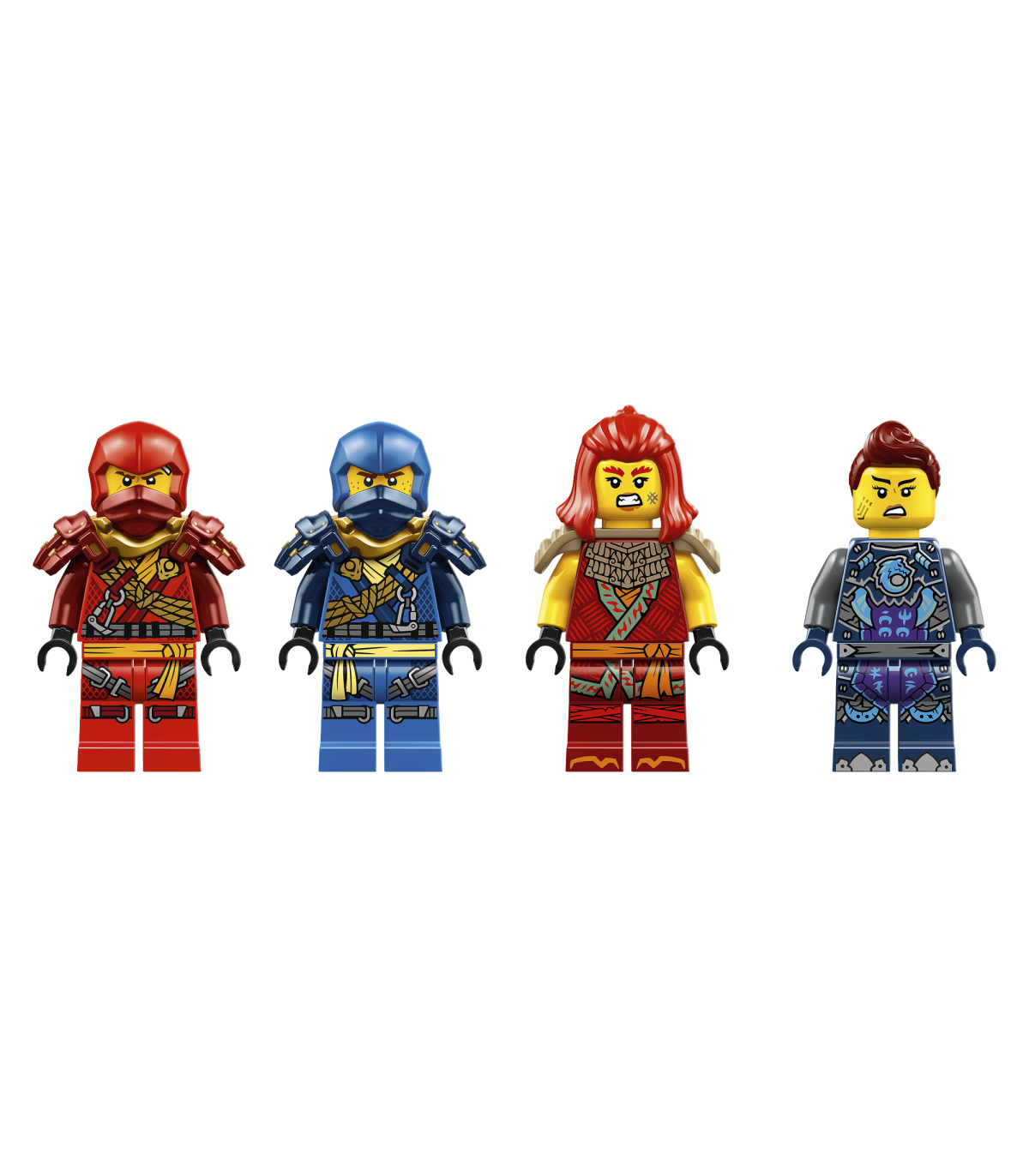 • 4 NINJAGO® minifiguuri: Ronija Kai ja Ronija Jay, mõlemal katana mõõk, Wyldfyre kahe leegitseva rusikaga ja Jordana purilennukiga