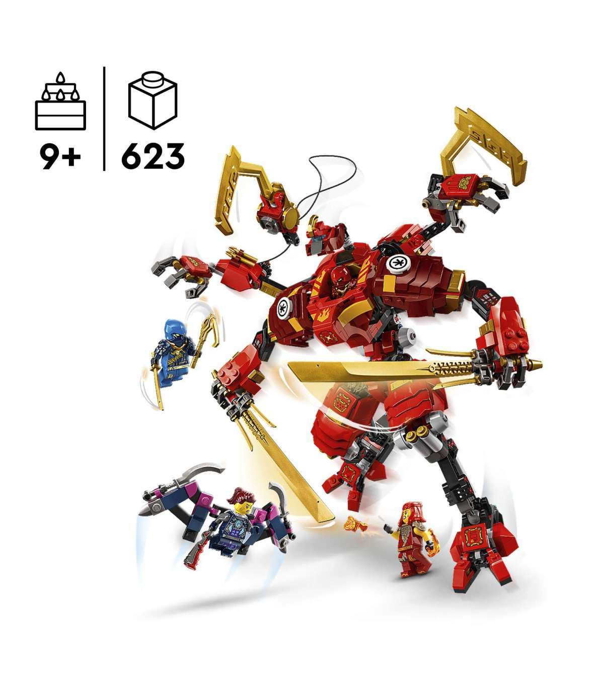 • Robotiga seiklusmänguasi lastele – 9-aastased ja vanemad poisid ja tüdrukud saavad mängida telesarja „NINJAGO® Dragons Rising“ 2. hooaja lahinguid koos Kai ronimisrobotiga