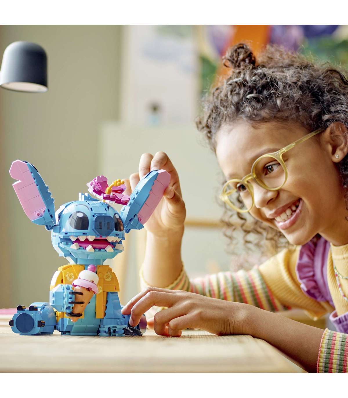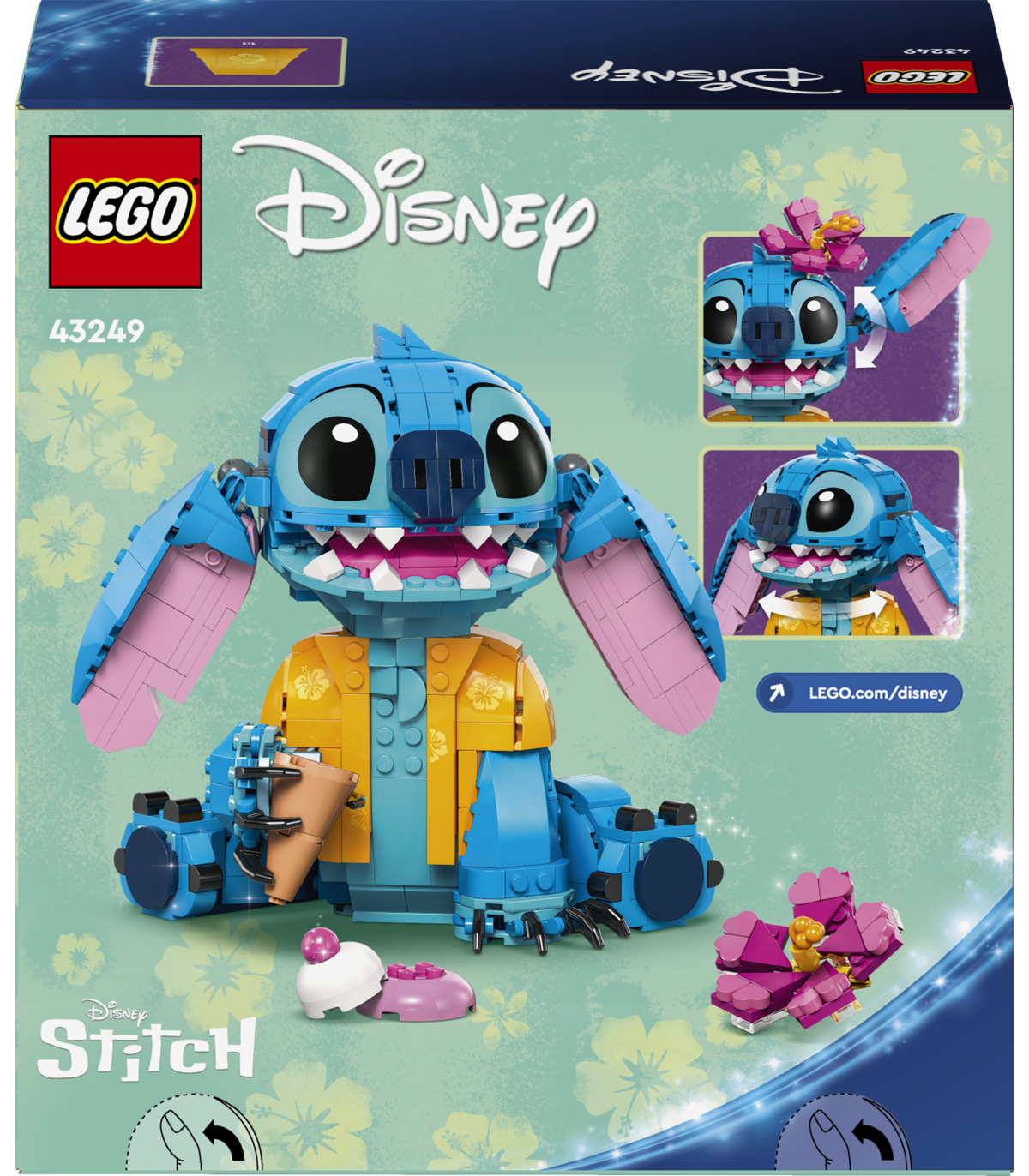 • Disney Stitchi tegelaskuju – selles loomingulises LEGO® ehituskomplektis on väljapandav Lilo ja Stitchi mudel, kokkupandav jäätisekoonus ja lill, mida saab kasutada tegelaskuju kaunistamiseks