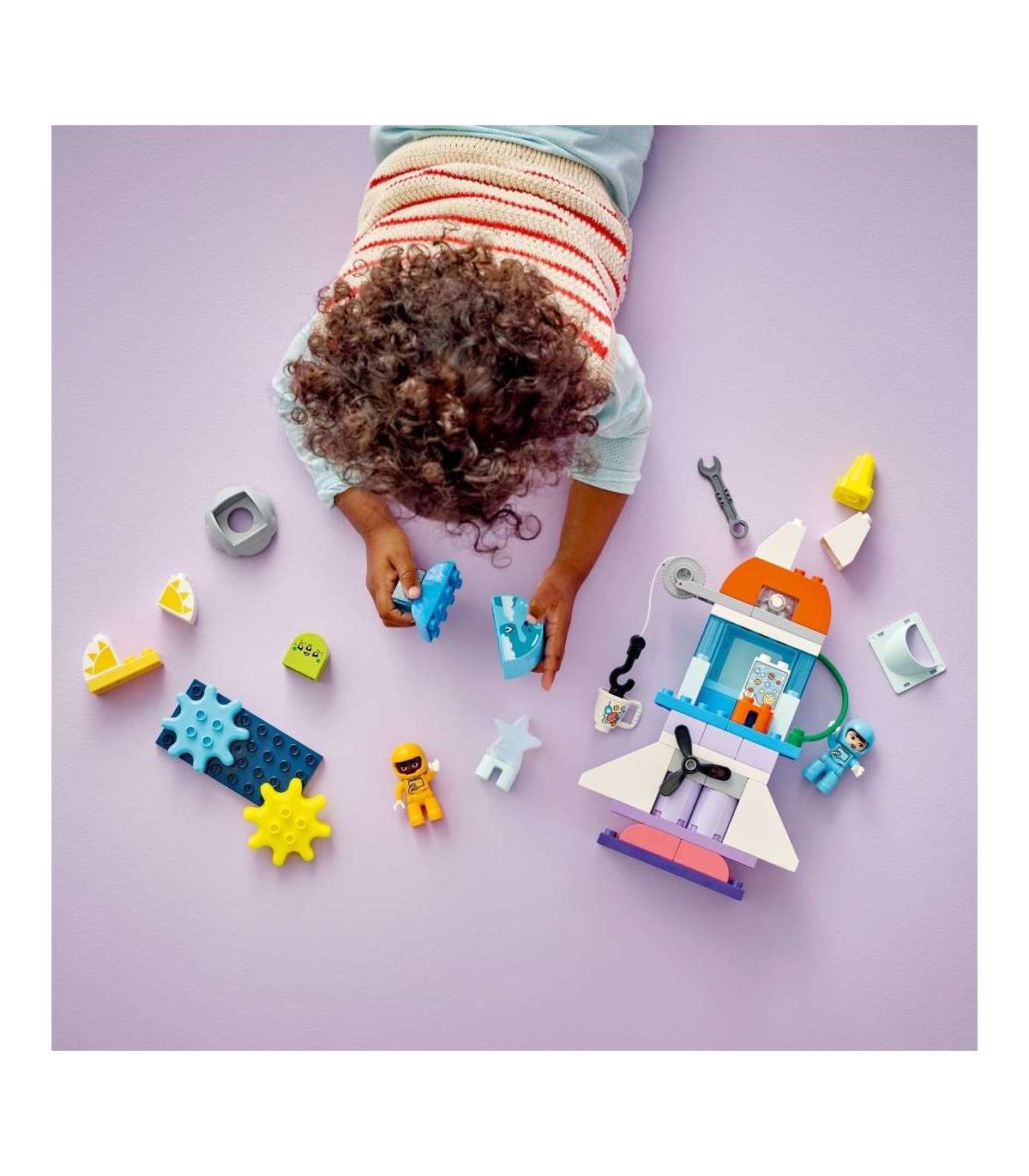 • Palju osi karbis – mitmesuguste värviliste klotside ja mänguasjatarvikute ning tulnuka ja kahe LEGO® DUPLO® astronaudi figuuriga leiutavad väikelapsed vahvaid kosmoseseiklusi, mis ei lõpe iial