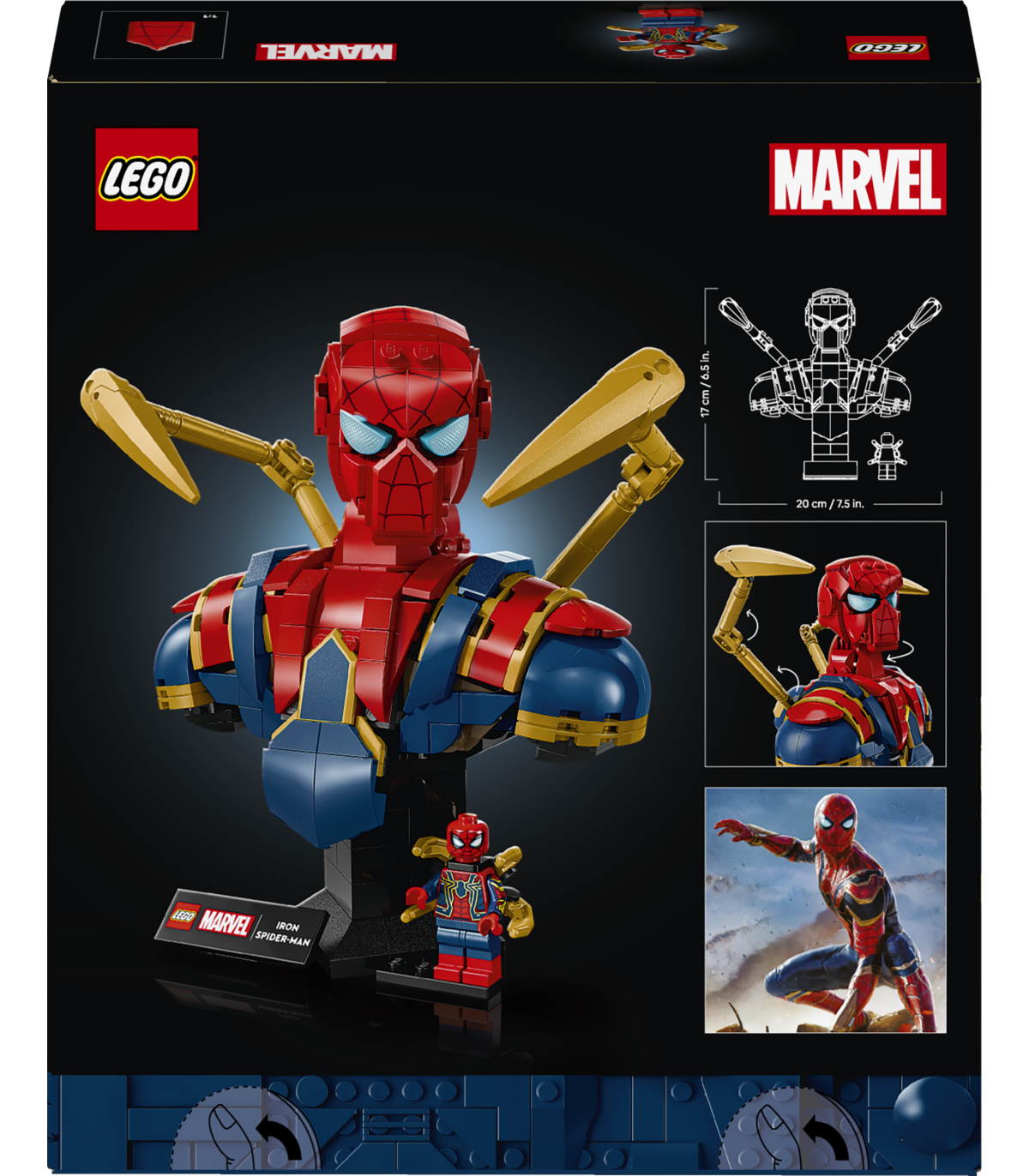 • Autentselt detailne – kuulsa Marveli tegelaskuju realistlikul mudelil on pööratav pea ja kaasas LEGO® Iron Spider-Mani minifiguur